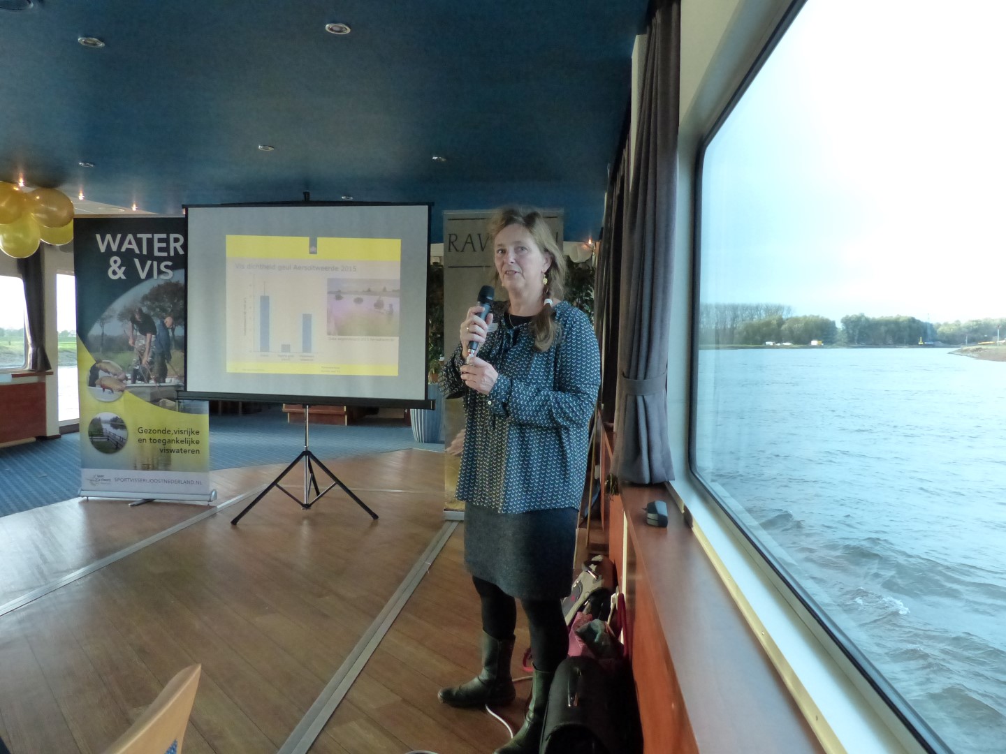 Tijdens een mooie vaartocht over de IJssel van Deventer naar Olst werden enkele projectlocaties van het project Ruimte voor de Rivier gepasseerd en toegelicht. Eenmaal terug aan de Wellekade in Deventer was hét moment daar: de officiële overhandiging van de vissenatlas door Ed Piek en Rob van Westrienen (RAVON) aan de waterschapsbestuurders Nettie Aarnink (Vechtstromen) en Hans de Jong (WDOD) met als kers op de taart de mededeling dat alle gasten die dag een vissenatlas cadeau zouden krijgen.