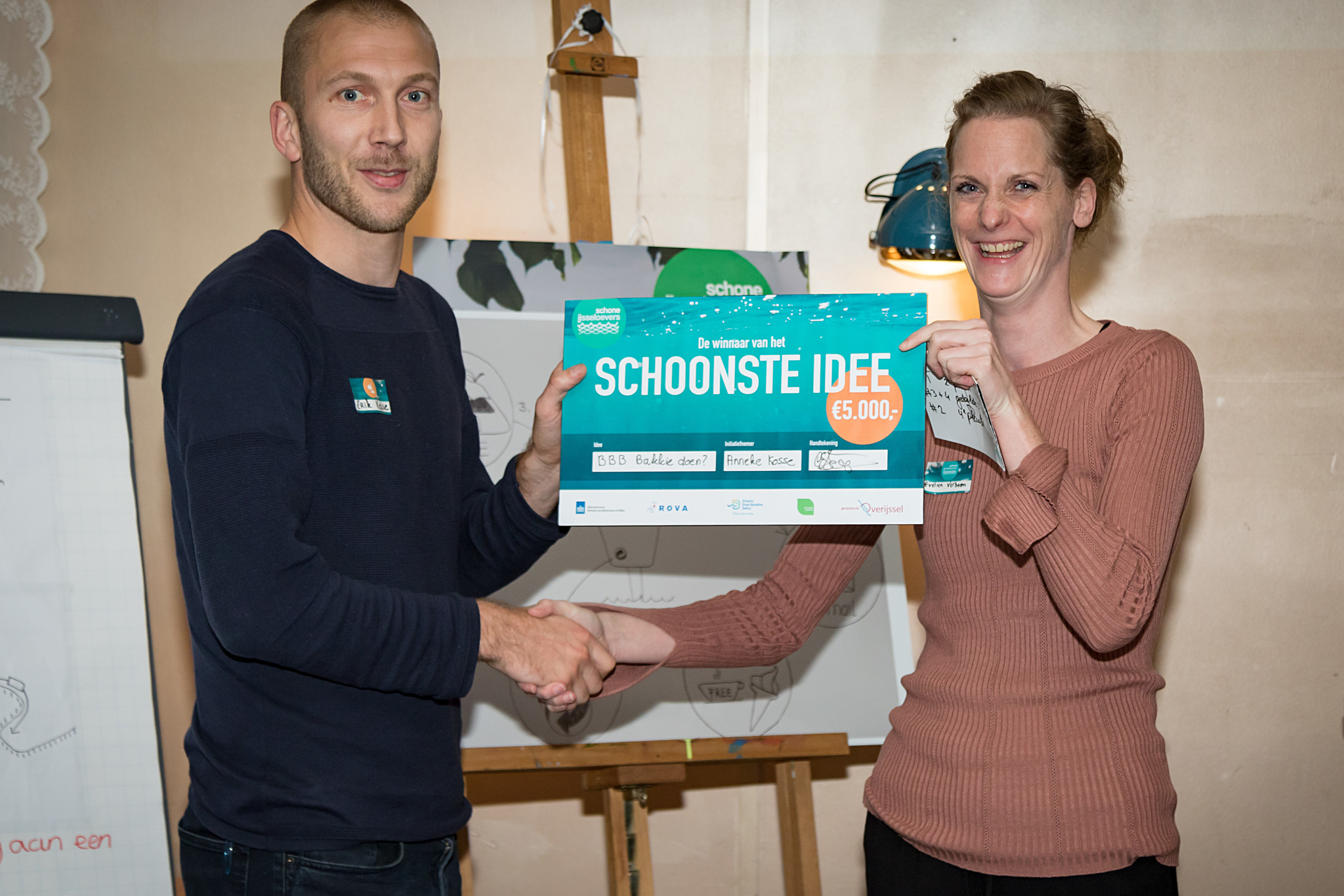 Initiatiefnemer Anneke Kosse won met haar idee “BBB Bakkie doen?” een cheque van € 5.000,=.