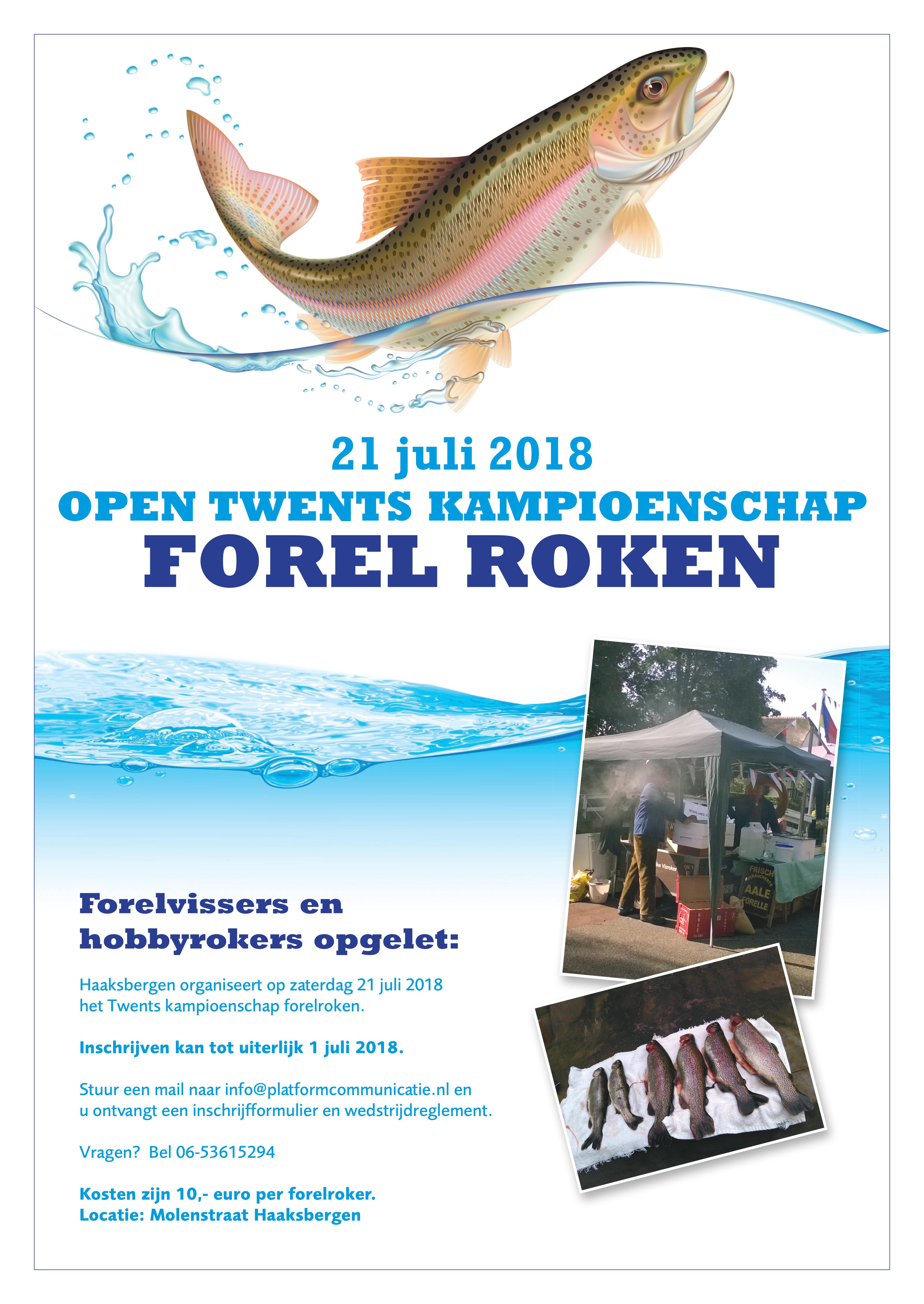 Op zaterdag 21 juli wordt in Haaksbergen het Open Twents kampioenschap forel roken georganiseerd. Forelvissers en hobbyrokers worden van harte uitgenodigd om hieraan mee te doen.