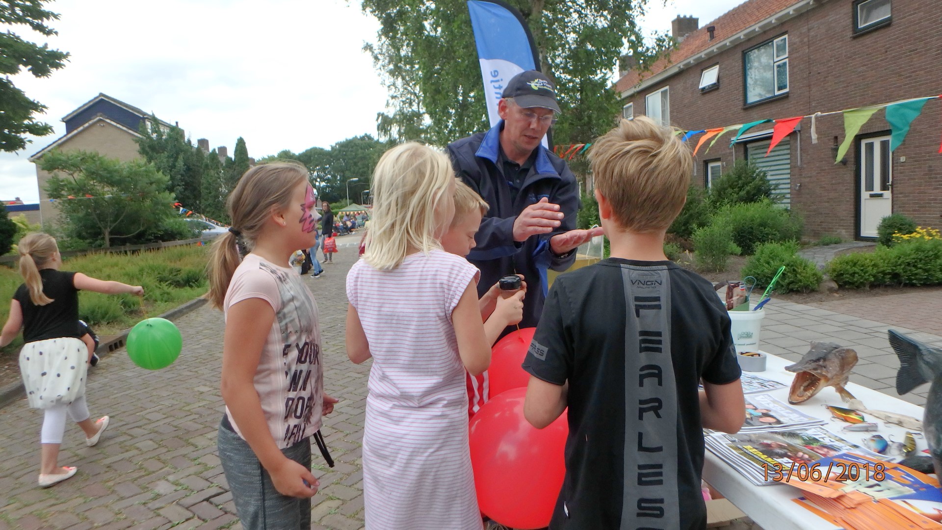 Op woensdag 13 juni mochten onze vismeesters Sven en Jurrien de hengelsport promoten op de nationale buitenspeeldag in Marknesse. Zij hadden in de ochtend in de plaatselijke gracht een variëteit aan waterdieren gevangen en deze in aquaria op de stand ten toon gesteld. Kinderen en ouderen konden zo kennis maken met de onderwaterwereld van hun lokale gracht.
