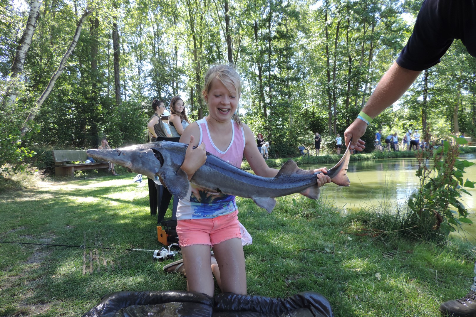 Gisteren werd onder prachtige zomerse weersomstandigheden het nieuwe jeugdevenement Steur- en meervalvissen bij Wild georganiseerd. Jeugdige sportvissers van 12 t/m 17 jaar konden gratis vissen onder de voorwaarde dat zij een leeftijdsgenoot zouden meenemen die normaal niet vist. Zo’n 42 jeugdige enthousiastelingen, waaronder 12 stoere meiden, wisten de weg naar de Wild-vijvers te vinden, al dan niet onder begeleiding van ouders of jeugdbeleiders van hengelsportverenigingen.