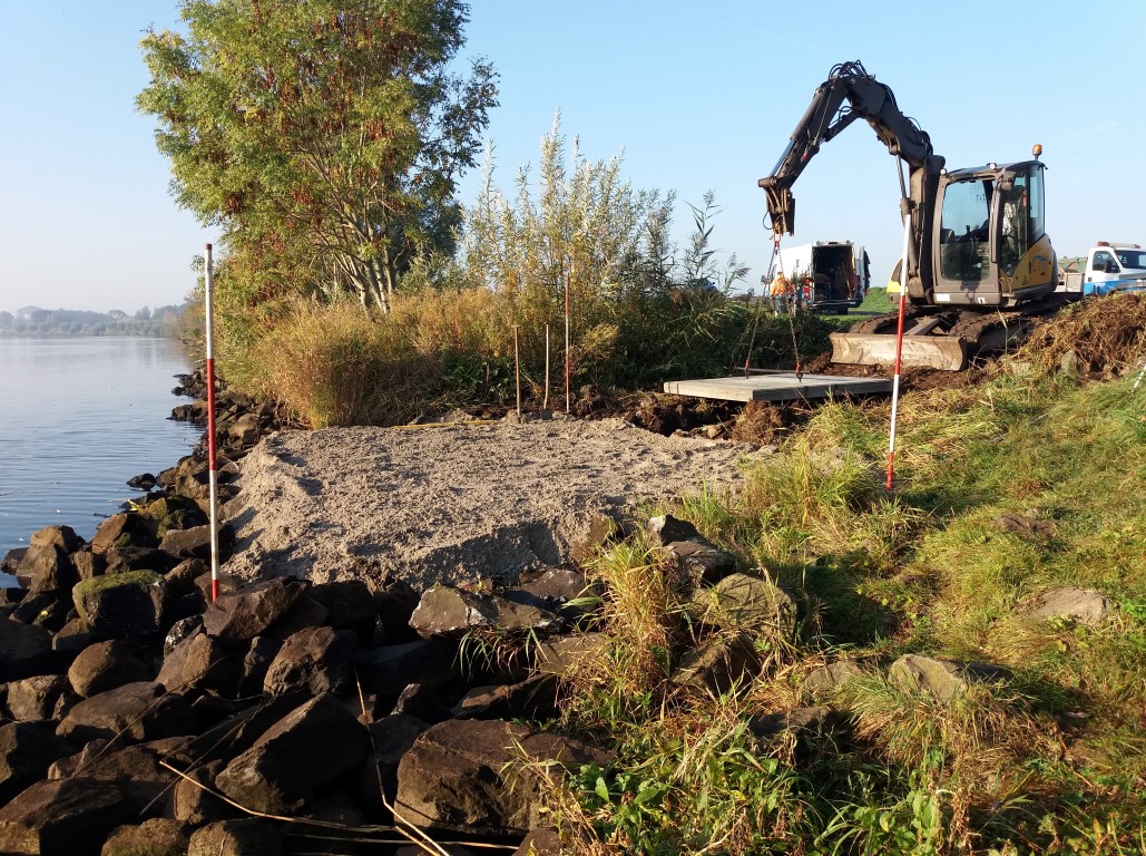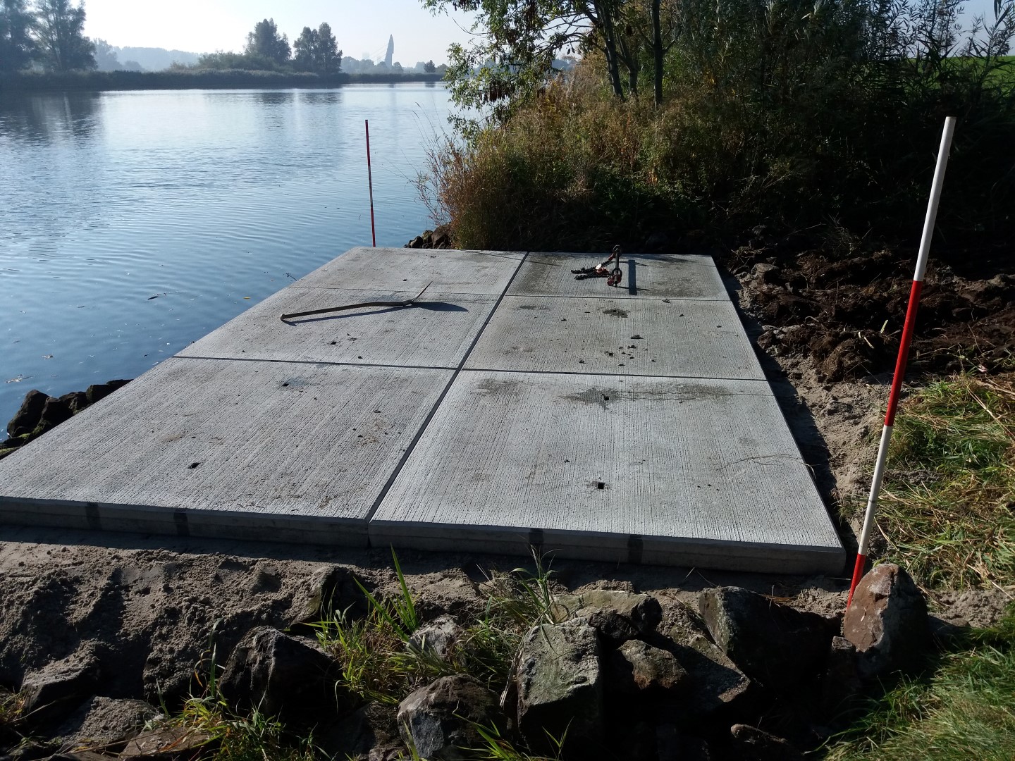 | De eerste betonplaat wordt gelegd | Een mooie vlakke en ruime visplaats |
