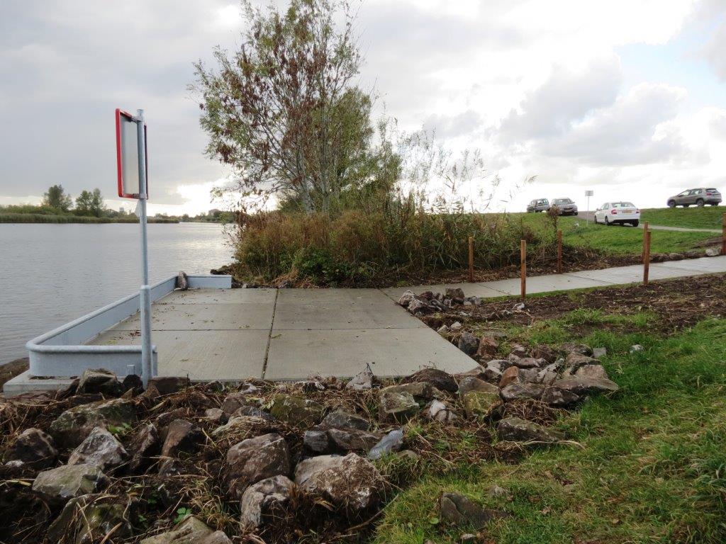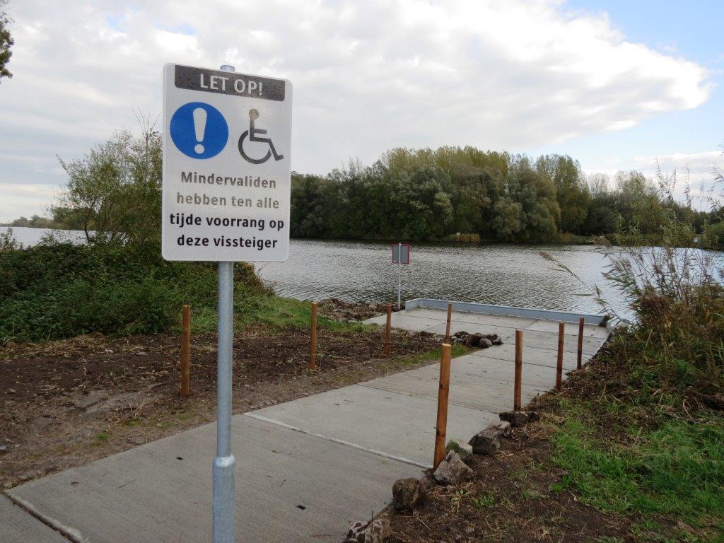 | Gladde toegangsweg en opstaande rand voor extra veiligheid | Mindervalide vissers hebben voorrang |