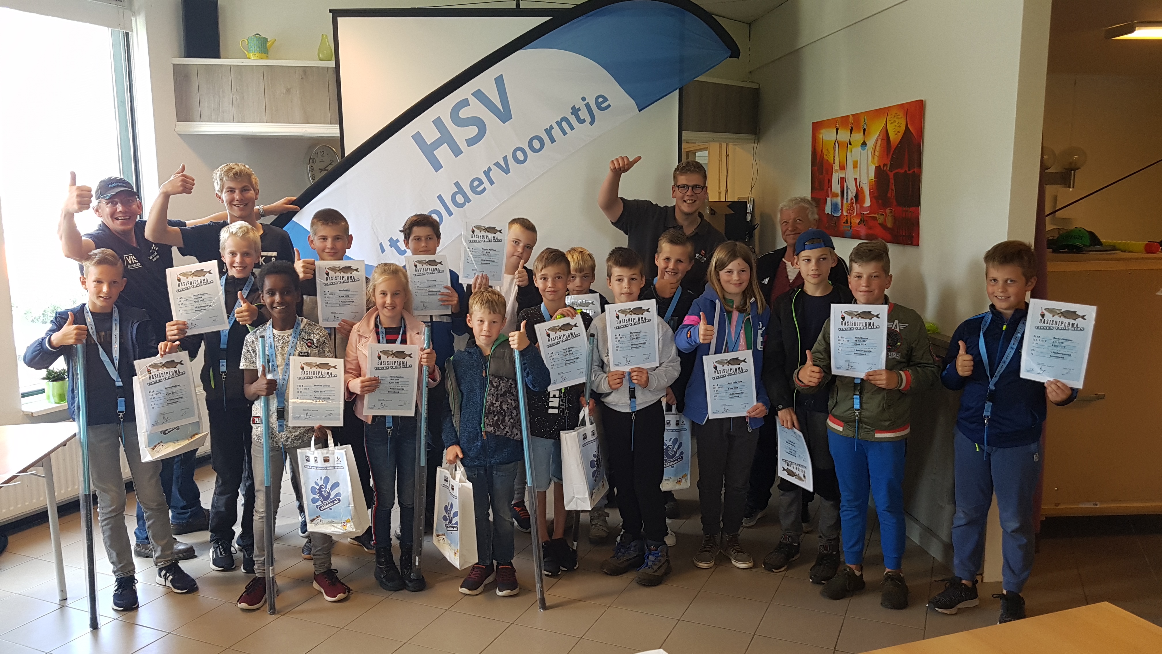 Op zaterdag 8 juni mocht de vismeester samen met de jeugdcommissie van HSV ’t Poldervoorntje uit Emmeloord voor maar liefst 18 kinderen een viscursus “Vissen met de vaste stok” verzorgen. Tijdens deze op maat gemaakte les kwamen alle aspecten van het vissen met de vaste stok aan bod.