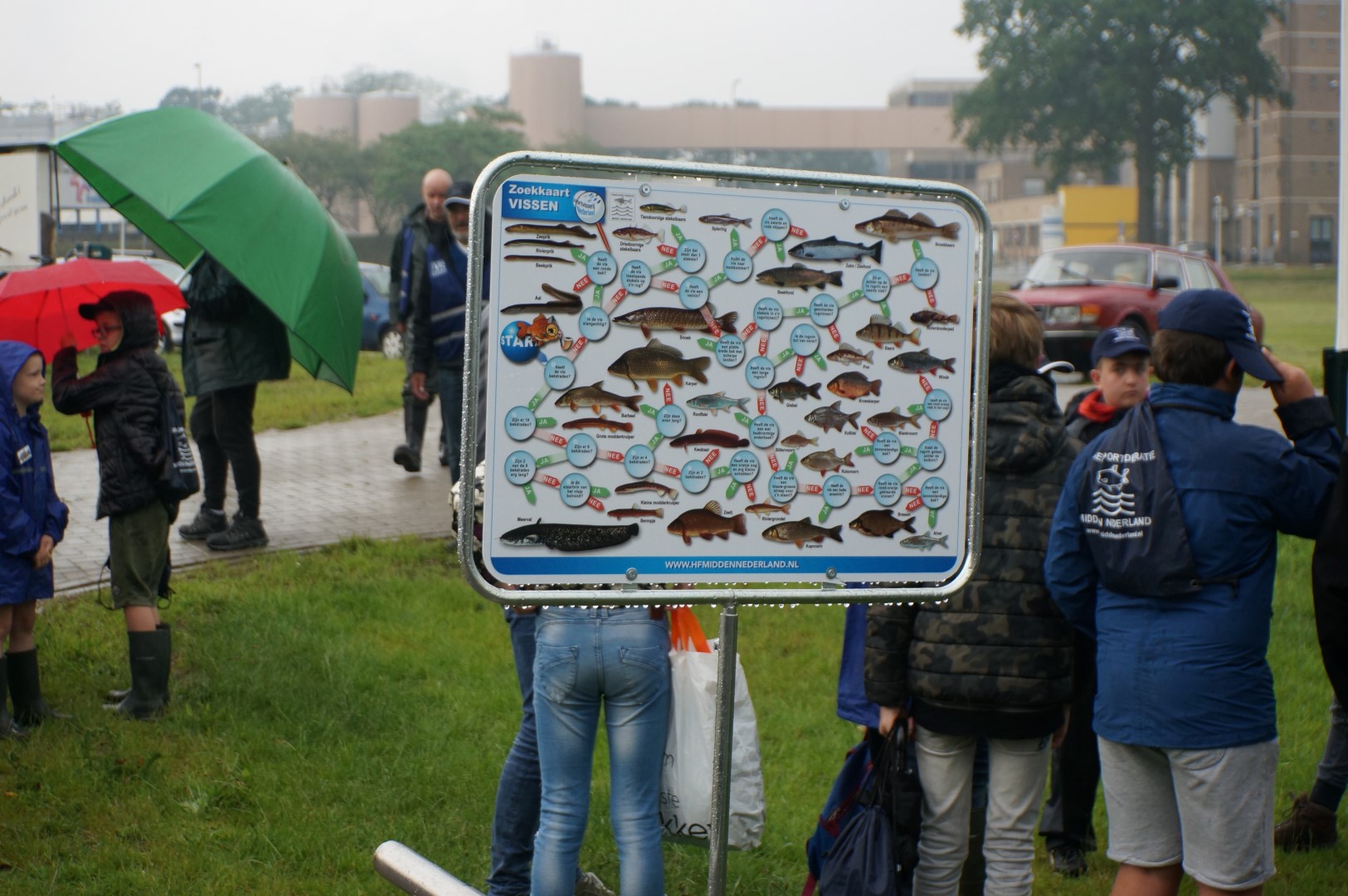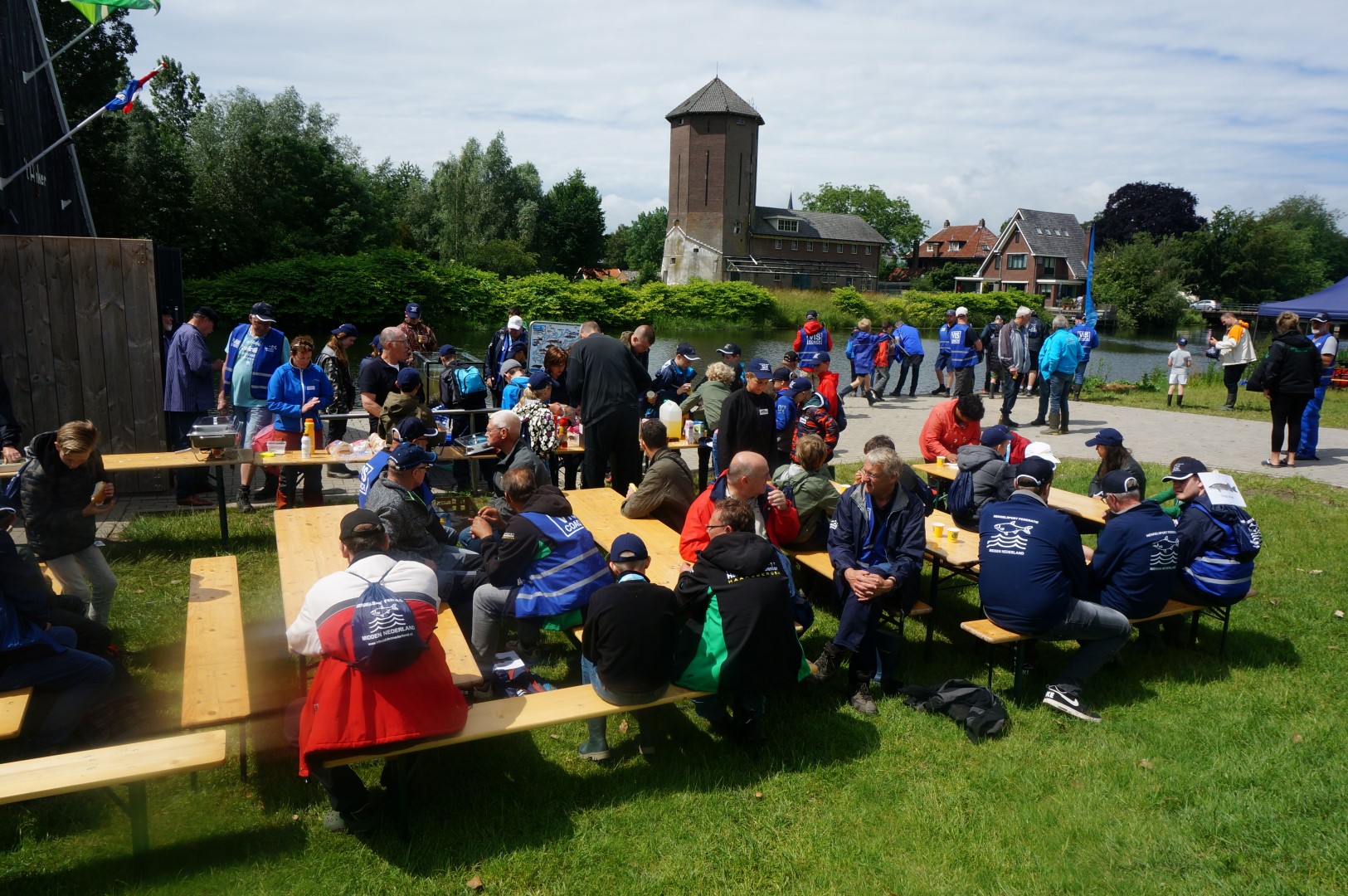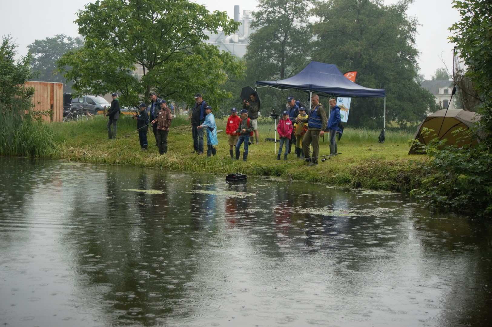 Ondanks dat het in de ochtend regende, waren nagenoeg alle jeugdvissers aanwezig. Sommige hadden de korte broek al aan. Het duurde namelijk niet lang duren voordat de wolken wegtrokken en de zon begon te schijnen.