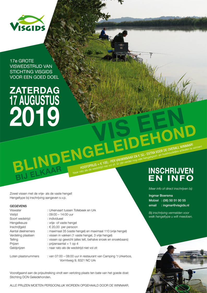 Traditiegetrouw organiseert de Stichting Visgids ook dit jaar weer een Goede Doelen wedstrijd. De Goede Doelen wedstrijd vindt plaats op zaterdag 17 augustus. Evenals vorig jaar wordt gevist in de Urkervaart en gaat een deel van de opbrengst naar Stichting DCN Geleidehonden.