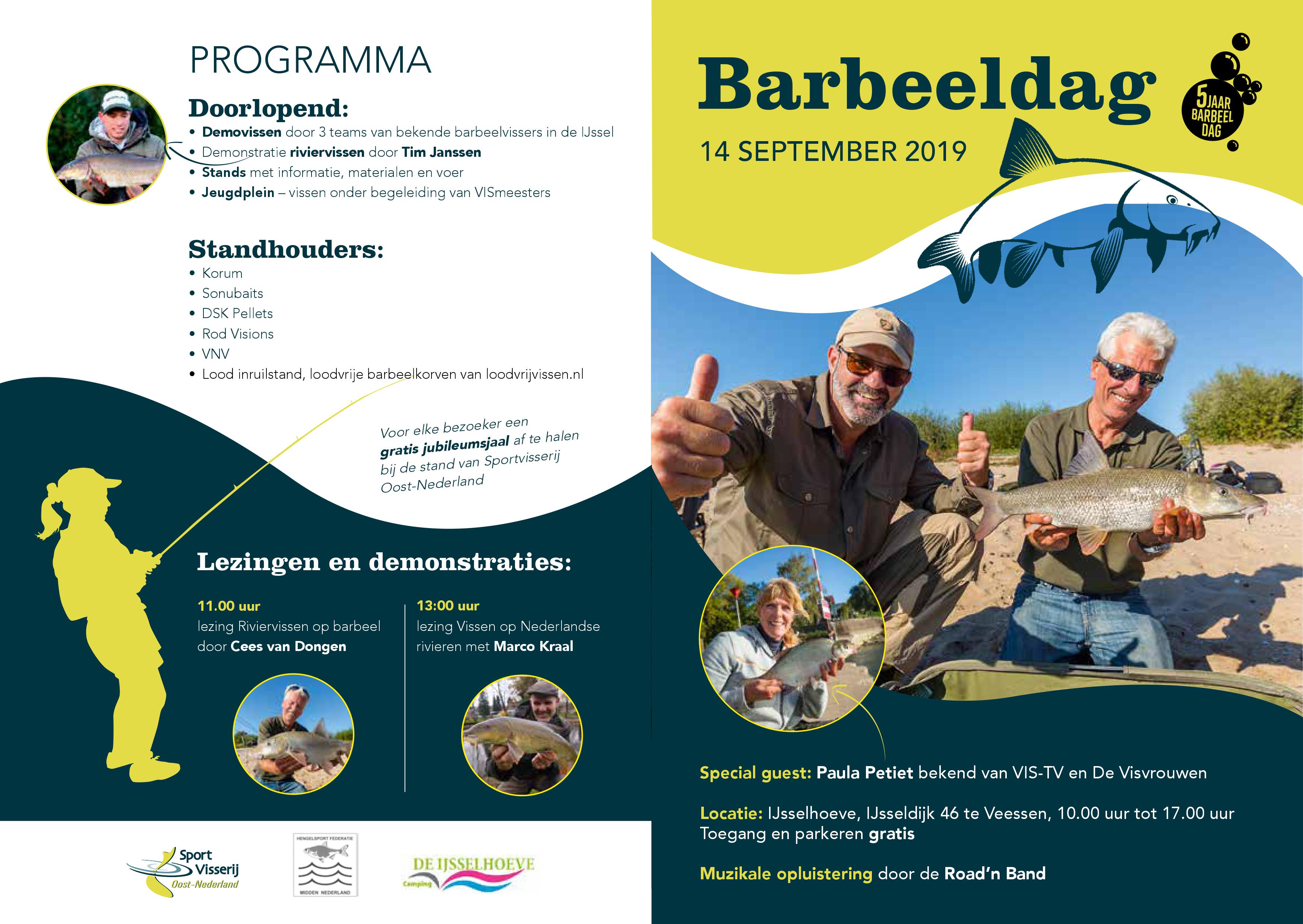 Over enkele weken is het zover, op zaterdag 14 september organiseren Sportvisserij Oost-Nederland en Hengelsport Federatie Midden Nederland voor de vijfde keer de barbeeldag aan de IJsseloever bij Veessen. Achter de schermen is hard gewerkt om weer een mooi programma voor je neer te zetten, waarbij we rekening gehouden hebben met vragen en verzoeken uit eerdere edities. Speciaal voor deze lustrumeditie brengt de Road’n Band op het campingterrein een gezellig blues-repertoire ten gehore. Zoals je gewend bent, is ook deze keer de toegang en parkeren geheel gratis. En voor de eerste 400 bezoekers is er een gratis jubileumsjaal af te halen bij de stand van Sportvisserij Oost-Nederland.