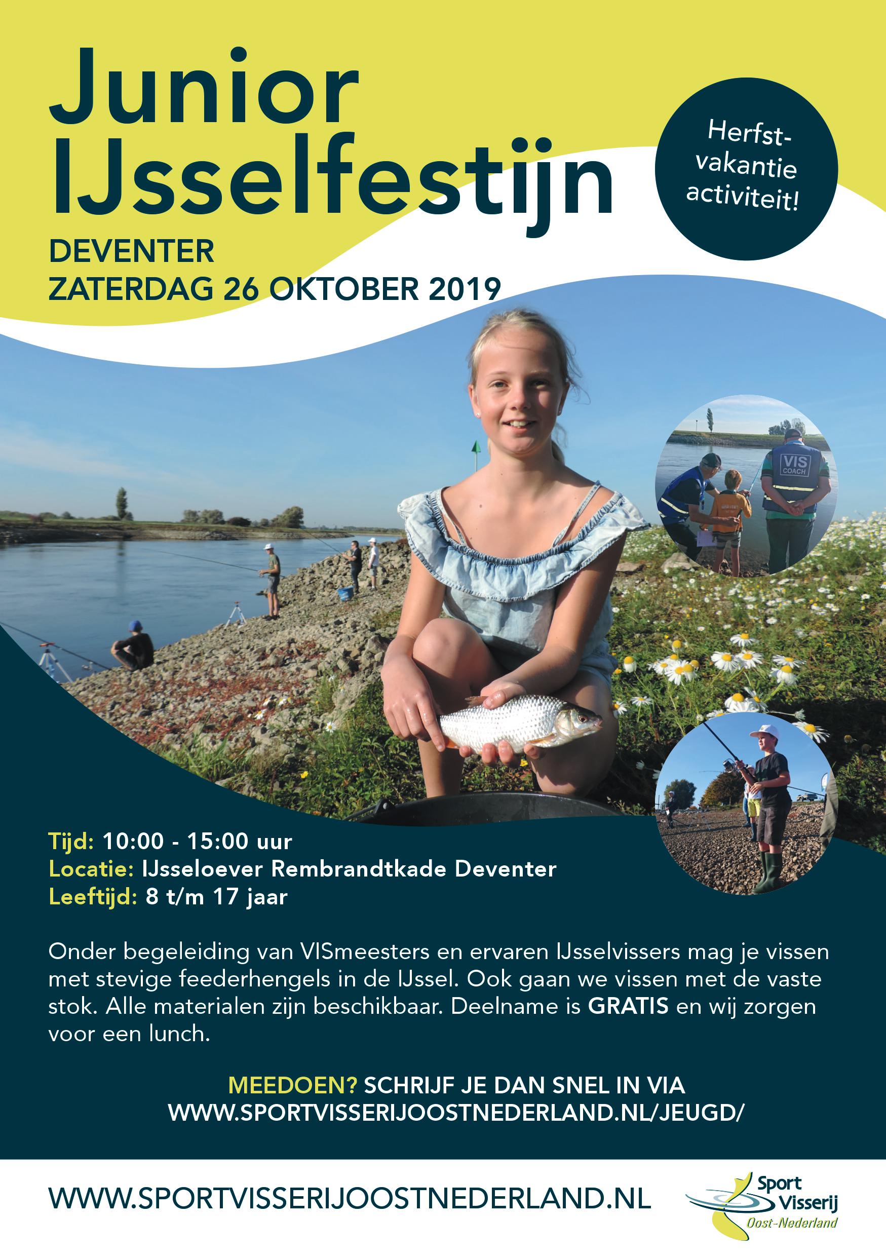 Op 26 oktober a.s. organiseert Sportvisserij Oost-Nederland een Junior IJsselfestijn aan de Rembrandtkade in Deventer. Ben jij een enthousiaste sportvisser in de leeftijd van 8 tot 17 jaar? Dan is dit echt iets voor jou! Kom kennismaken met het vissen aan de rivier.