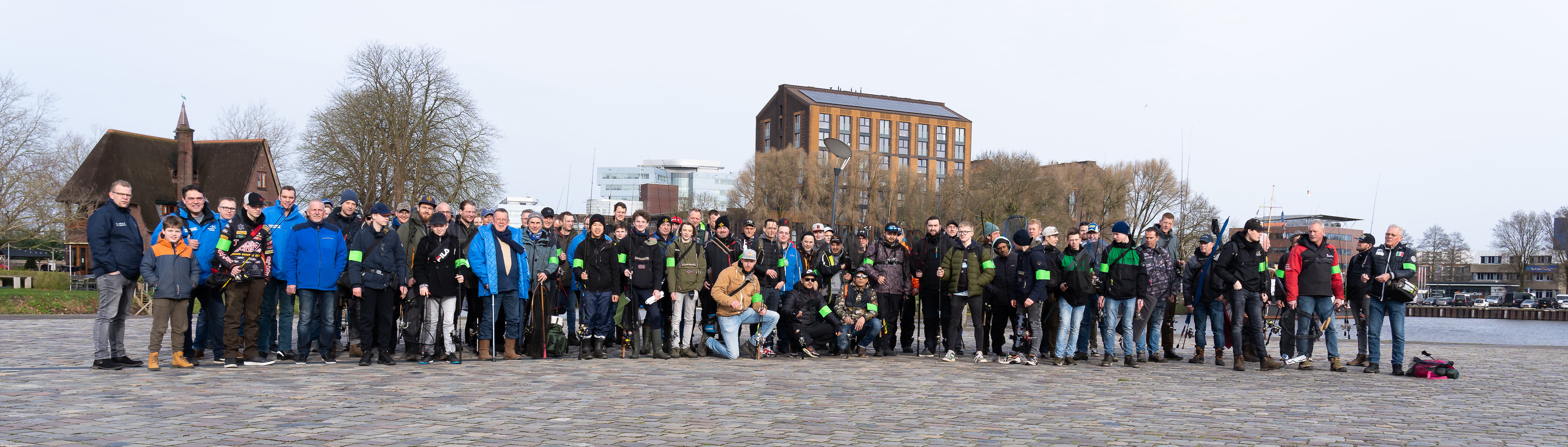 Na een korte briefing was het tijd voor de groepsfoto, waarna om klokslag 10 uur de teams fanatiek wegschoten naar het plekje waar ze de meeste en of eerste vis verwachtten.