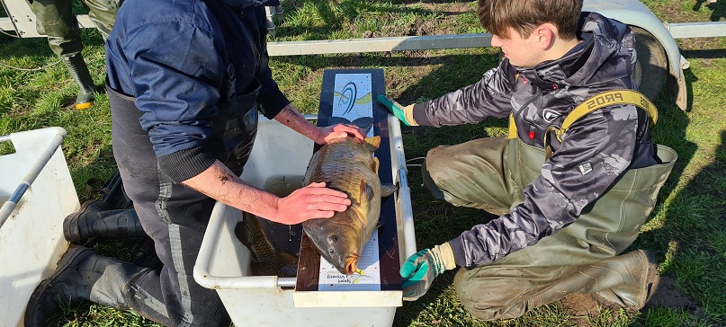 Zo'n 20 karpers zijn gemeten en overgezet naar de Dedemsvaart