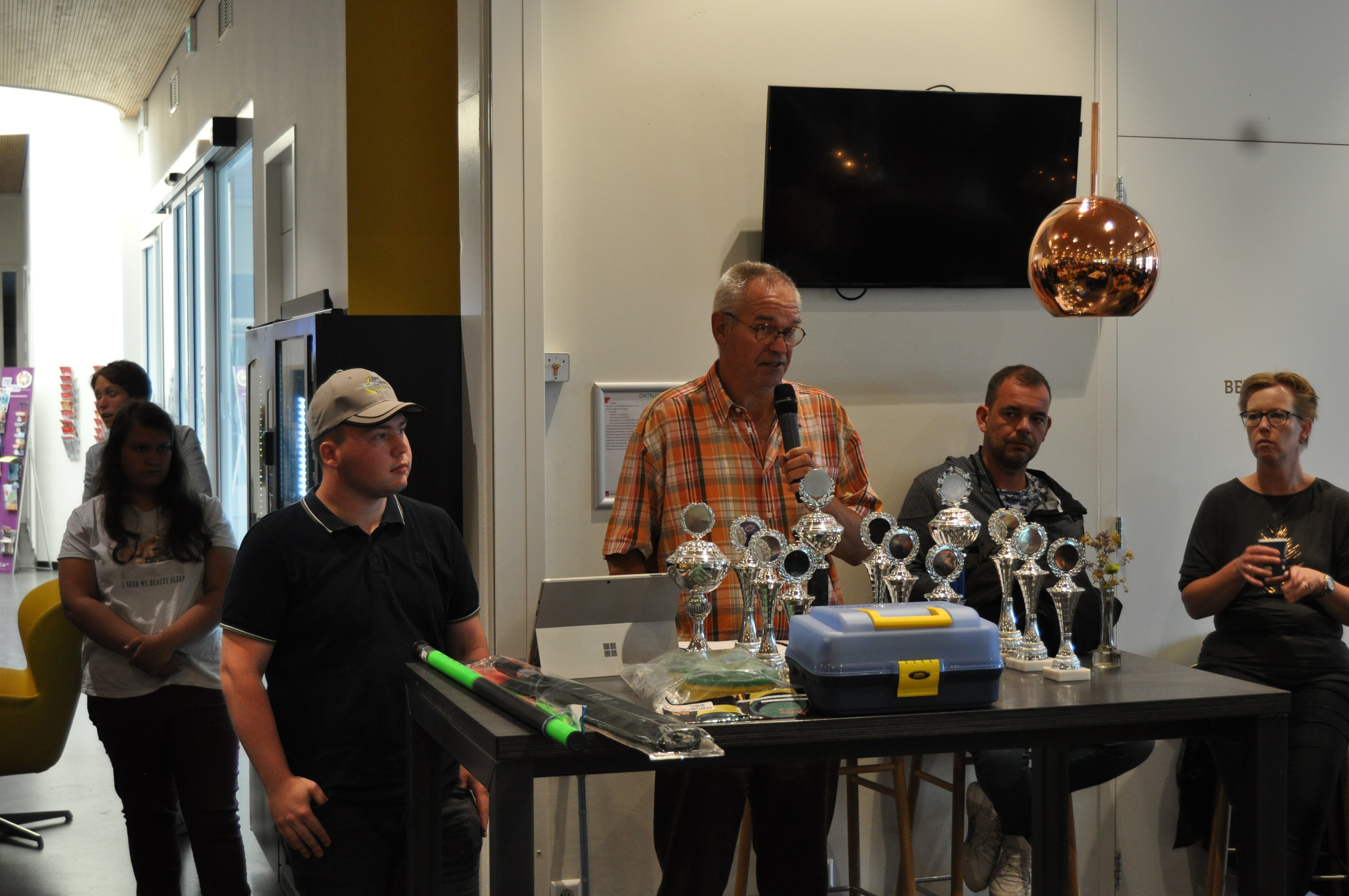 Na op een snelle en op correcte wijze de Drostenkampvijver schoon en opgeruimd achtergelaten te hebben, was het tijd om in het Restaurant van Tijenraan te verzamelen en kon de administrateur van commissie aan het werk om vast te stellen wie uiteindelijk de winnaars waren geworden van hun categorie.