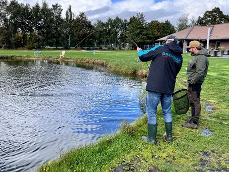 Na een werpclinic en een goede lunch werd er op forel gevist in de vijvers van de