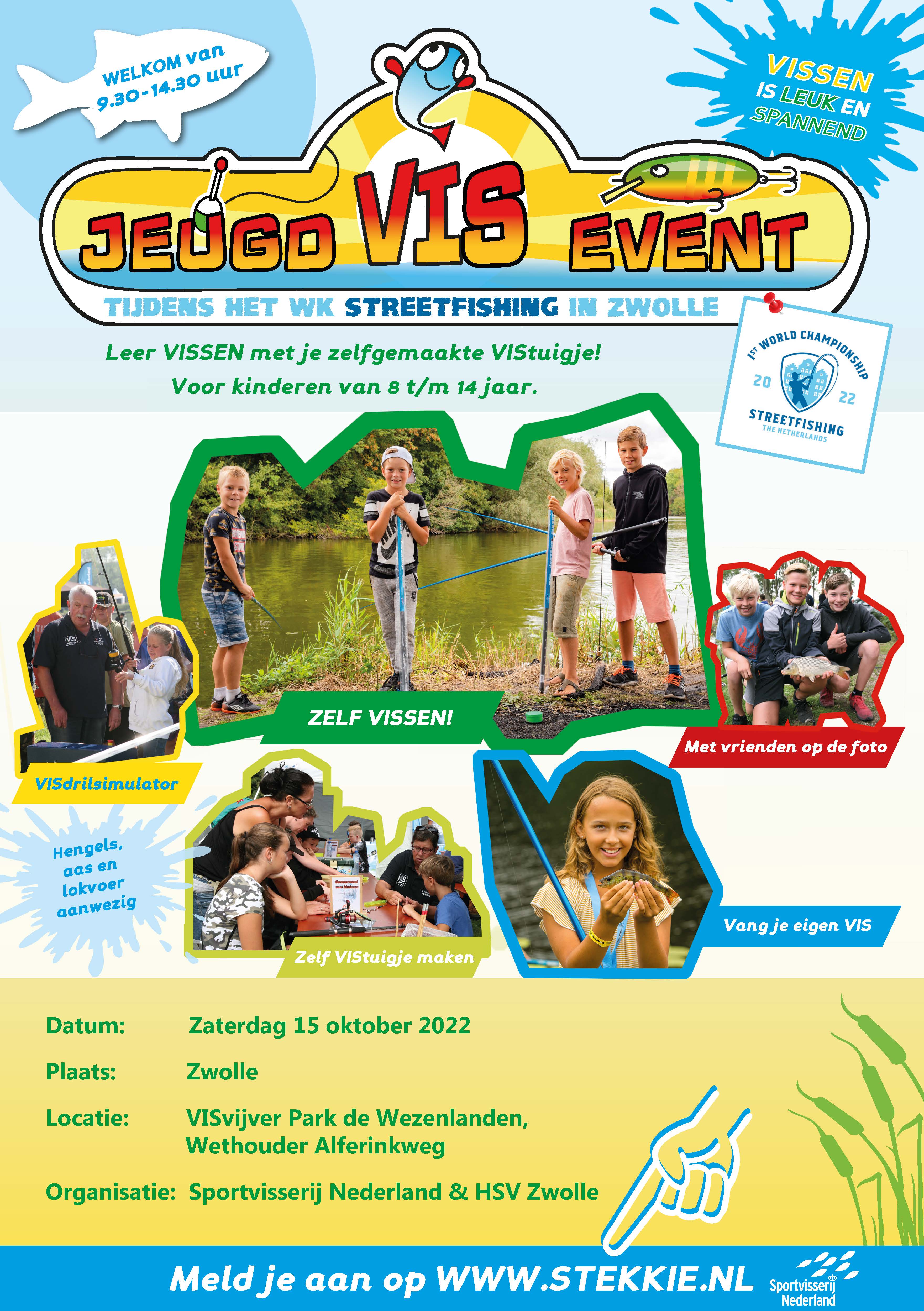 Deze dag is een side-event speciaal voor Jeugd naast het tweedaagse WK Streetfishing. Dit WK wordt georganiseerd op 14 en 15 oktober 2022 in de stadsgrachten van Zwolle.