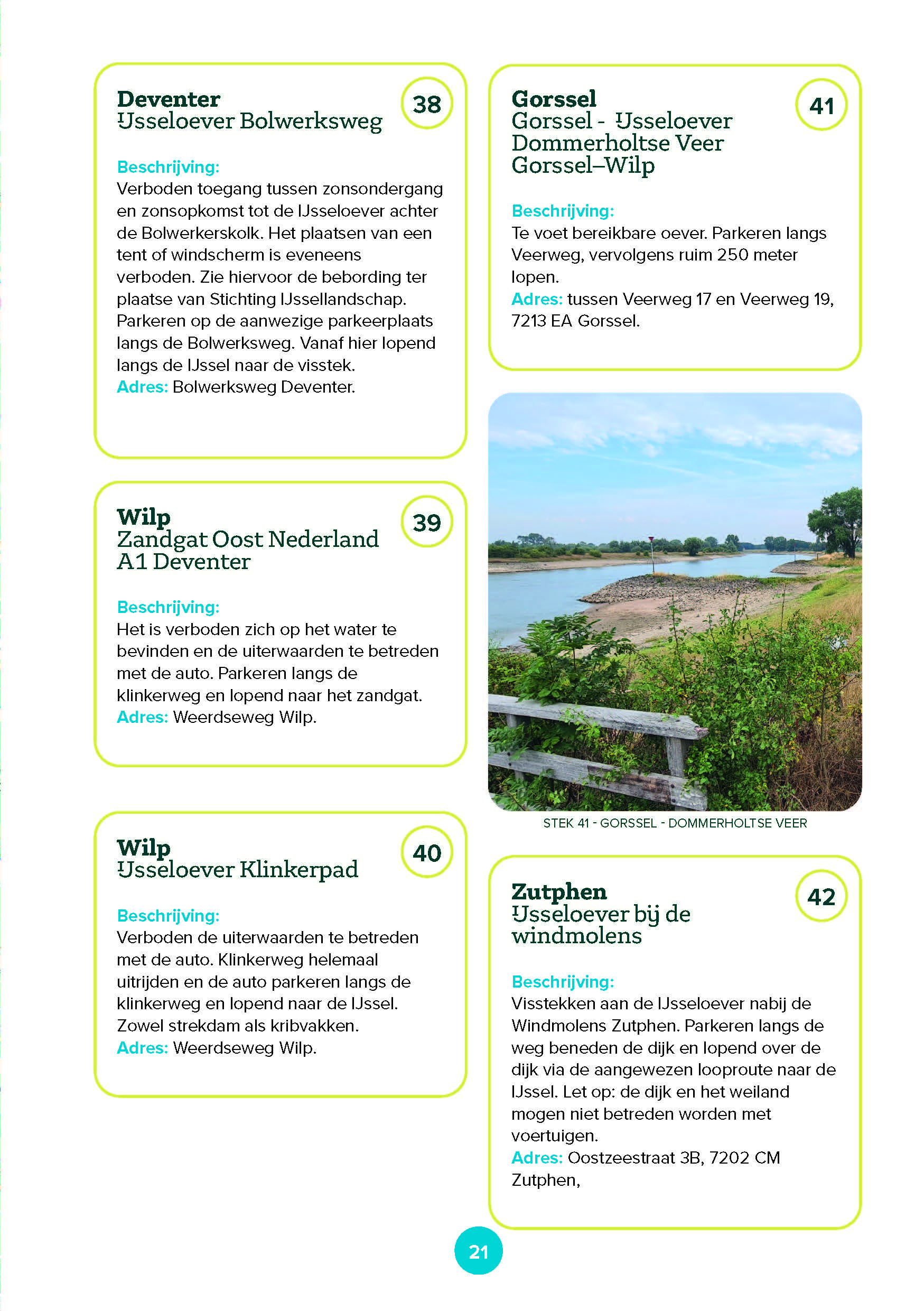 buurfederatie Midden Nederland de 61 mooiste en best bereikbare visstekken vanaf Kampen tot Arnhem voor je in beeld gebracht. Alle stekken zijn te bevissen met de VISpas. Per stek is duidelijk aangegeven hoe je er moet komen, wat bij benadering het adres is en of er bijzonderheden zijn.