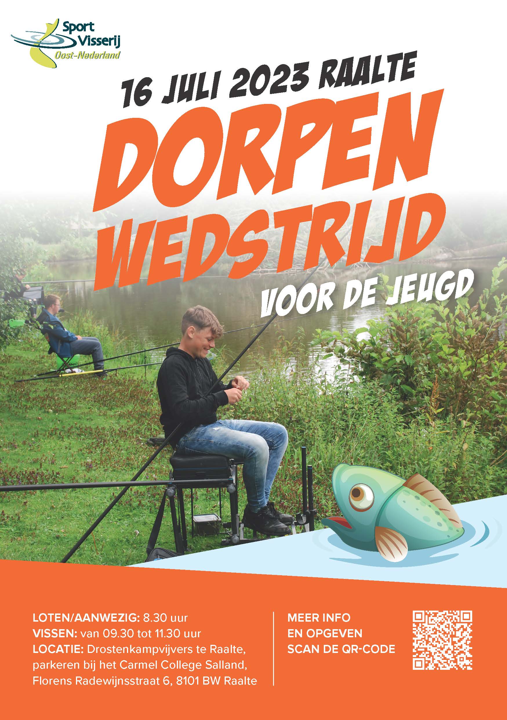 Per direct is het mogelijk om je in te schrijven voor de Dorpenjeugdviswedstrijd. Dit evenement, georganiseerd door de Dorpencommissie in samenwerking met Sportvisserij Oost-Nederland, biedt jeugdige vissers de kans om laagdrempelig een leuk wedstrijdje te vissen in het Drostenkamp te Raalte. We nodigen jullie uit om deel te nemen aan de Dorpenjeugdviswedstrijd, die dit jaar alweer voor de 15e keer plaatsvindt.