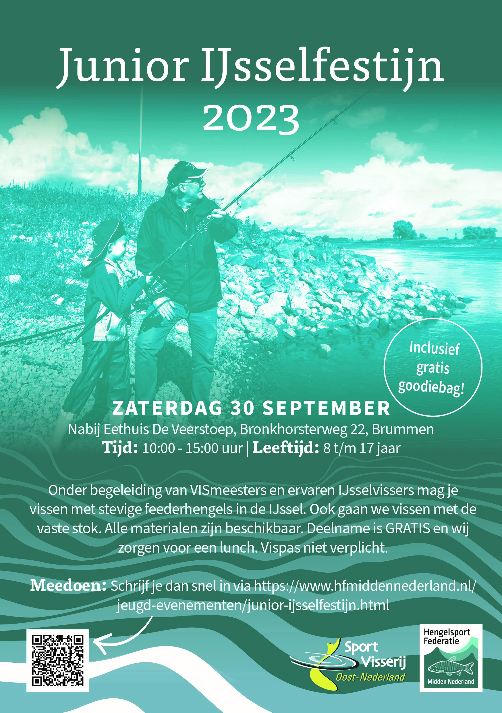 Op zaterdag 30 september a.s. organiseren Sportvisserij Oost-Nederland en Hengelsport Federatie Midden Nederland het Junior IJsselfestijn Brummen voor jeugd van 8 t/m 17 jaar. Onder leiding van vismeesters en ervaren IJsselvissers kun je vissen met stevige feederhengels in de IJssel. Ook gaan we vissen met de vaste stok. Deelname is gratis, wij verzorgen alle materialen en er is plek voor maximaal 50 deelnemers.