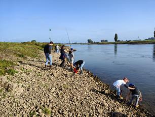 Na een openingswoordje werd de groep in tweeën gedeeld, de eerste groep ging vissen met de vaste hengel. De tweede groep startte met het vissen met de feederhengel. Onder goede begeleiding klonken al snel de eerste juichkreten, de eerste vissen waren binnen! Een aantal konden bewaard worden in een groot aquarium, waardoor er uitgelegd kon worden hoe een vis herkend kan worden door middel van de zoekkaart.