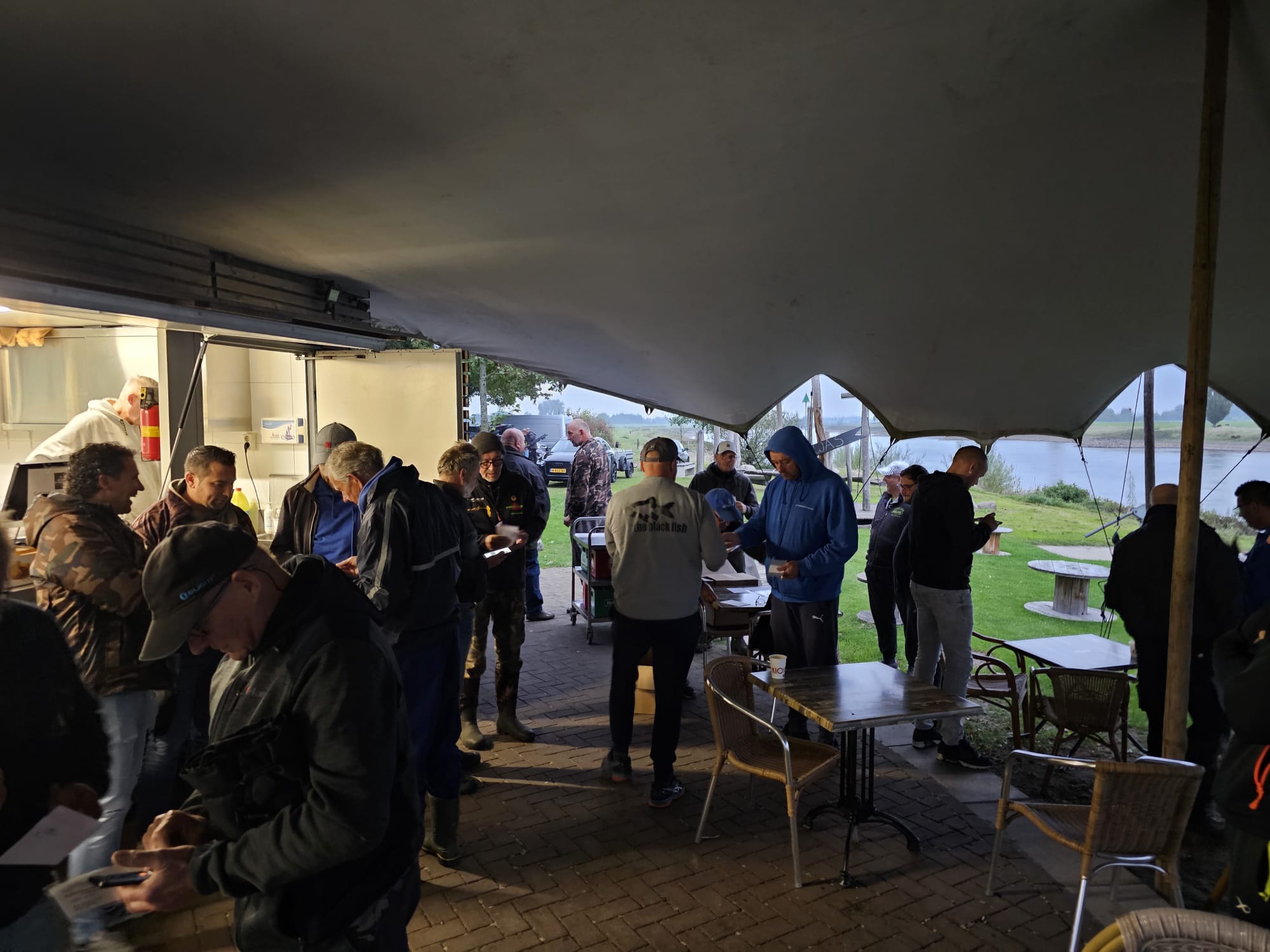 Na de samenkomst bij eethuis de Veerstoep, waar iedereen werd verwelkomd met een lekkere kop koffie, kon er om 7.30 uur geloot worden. Iedereen had er zin in en de sterke verhalen vlogen al in het rond. De verwachtingen waren goed, mede omdat de afgelopen weken de vangsten steeds beter werden.