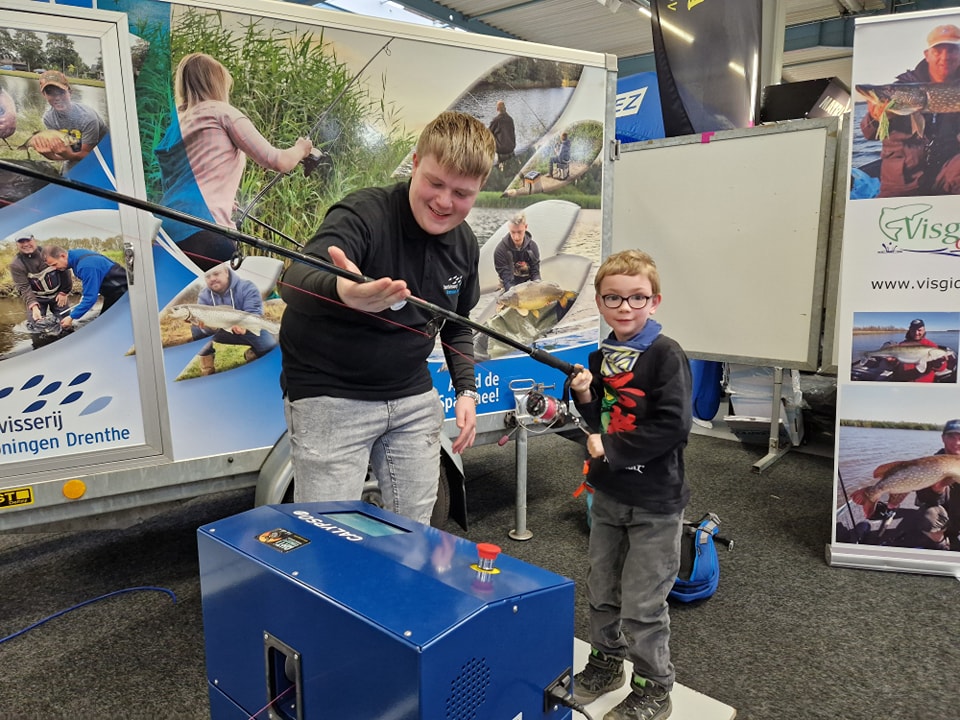Ook aan de jeugd was gedacht, enkele VISmeesters maakten tuigjes met de kinderen en er stond regelmatig een kind met een kromme hengel bij de visdrill machine. Een echte publiekstrekker.