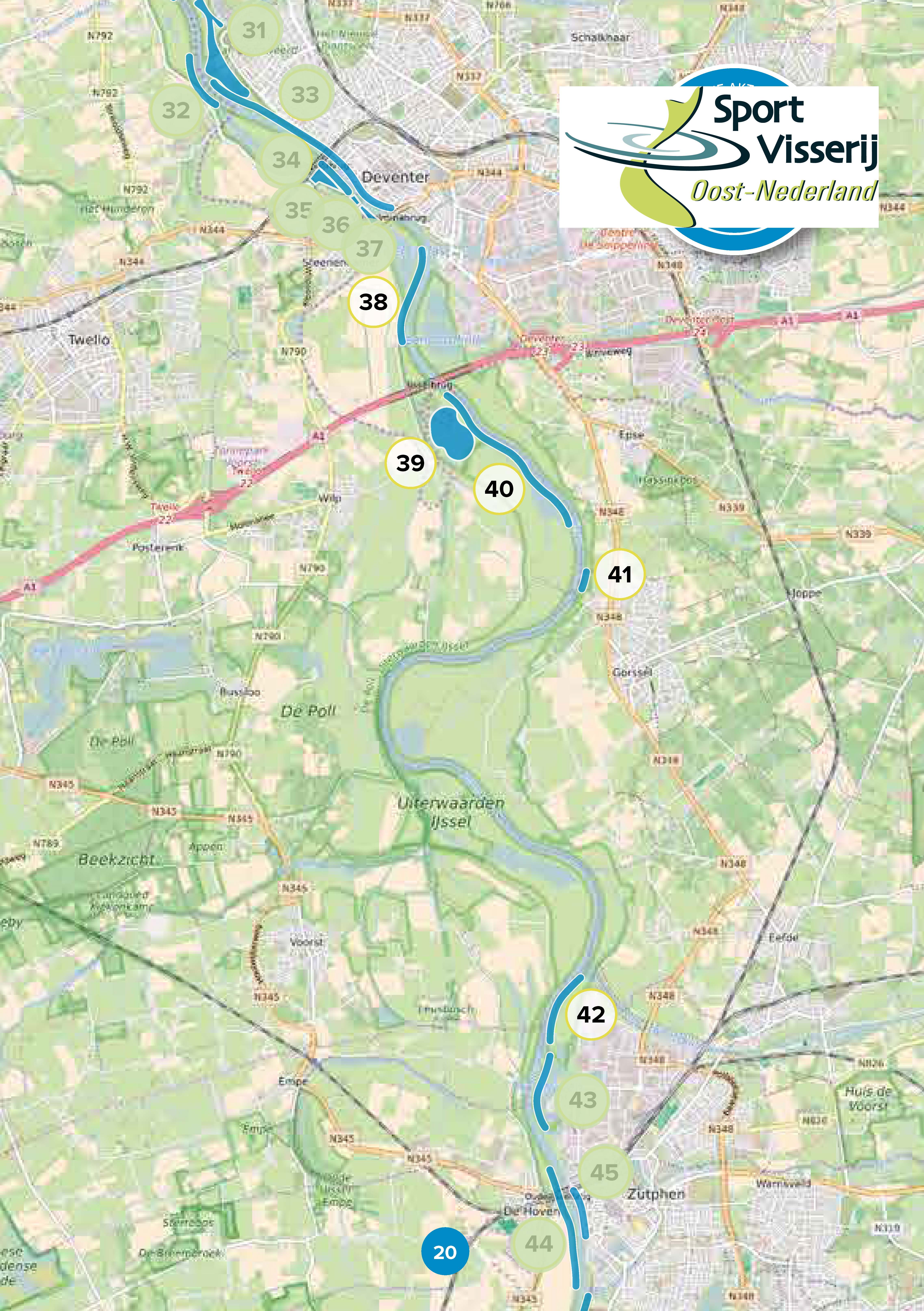 Die letzte Ausgabe der Angelplatzkarte stammt aus dem Jahr 2012 und in den letzten Jahren hat sich vor allem im Bereich der Geh- und Wegerechte einiges verändert. Nach einer gründlichen Bestandsaufnahme haben wir in Zusammenarbeit mit unserem Nachbarverband Hengelsport Federatie Midden Nederland die 61 schönsten und am besten erreichbaren Angelplätze von Kampen bis Arnheim zusammengestellt. Alle Spots können mit den VISpas befischt werden. Für jeden Standort ist die Anfahrt, die ungefähre Adresse und eventuelle Besonderheiten deutlich angegeben.