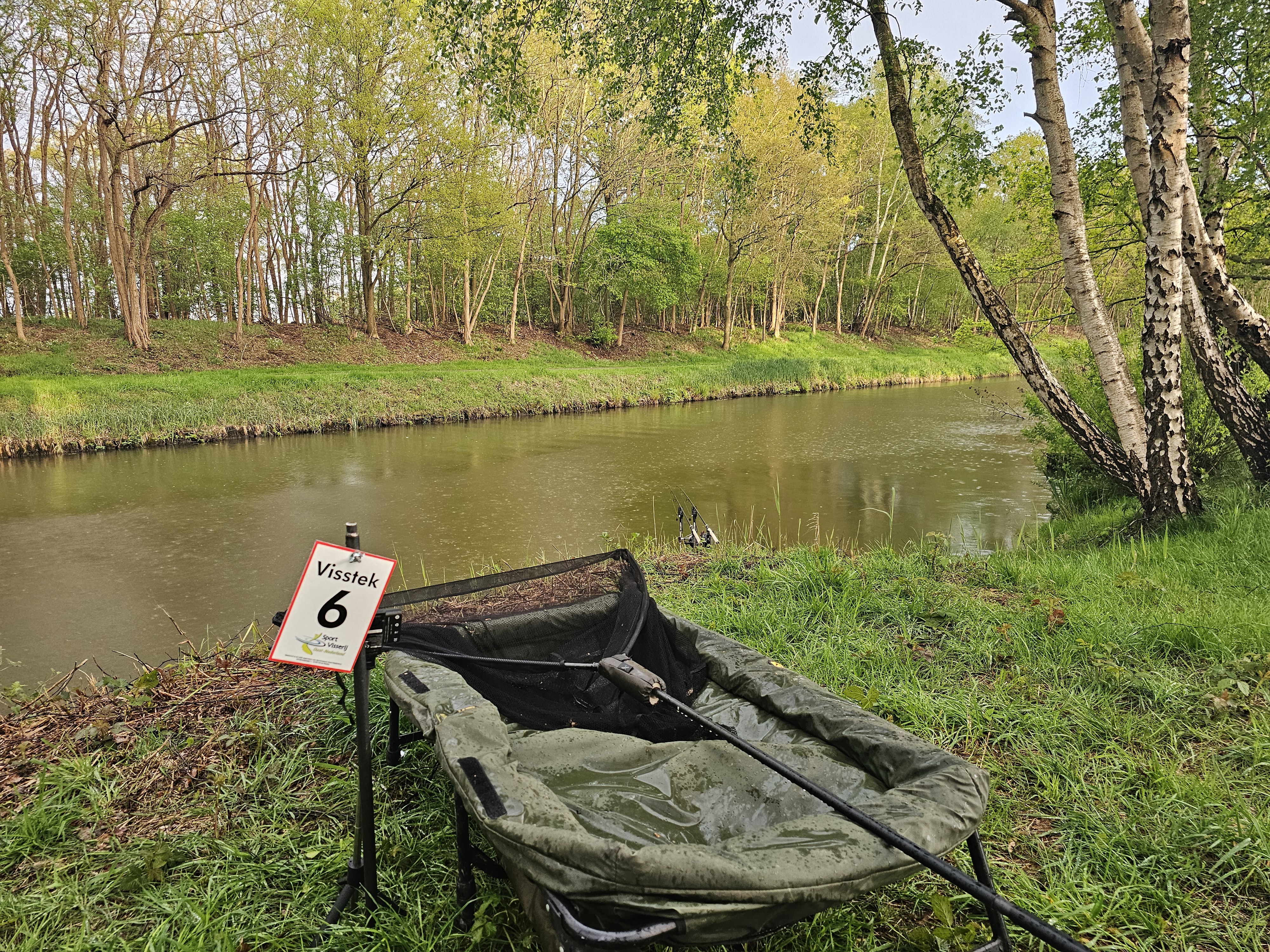 Op vrijdag 19 april omstreeks 17:00 vond de loting plaats. Tussen de buien door waren de steknummers ruim uitgezet, gemiddeld zo’n 400 meter ruimte tussen de stekken. Door de weersverandering werd het pad helaas wel op sommige stukken steeds slechter. De weersomslag van bijna 20 graden overdag naar ‘s nachts nachtvorst voorspelde een lastige wedstrijd. Desondanks waren 18 koppels, van heinde en verre enthousiast aangekomen bij de loting (een team was de loting vergeten). Poolse teams, een Belgisch team, dat speciaal nog een vispas aangeschaft had, een team uit Friesland en een team uit omgeving van Rotterdam, overal kwamen de teams weg. In het kantoor van Sportvisserij Oost-Nederland werden de stekken verloot en daarna konden de vissers aan de slag om de materialen op te bouwen.