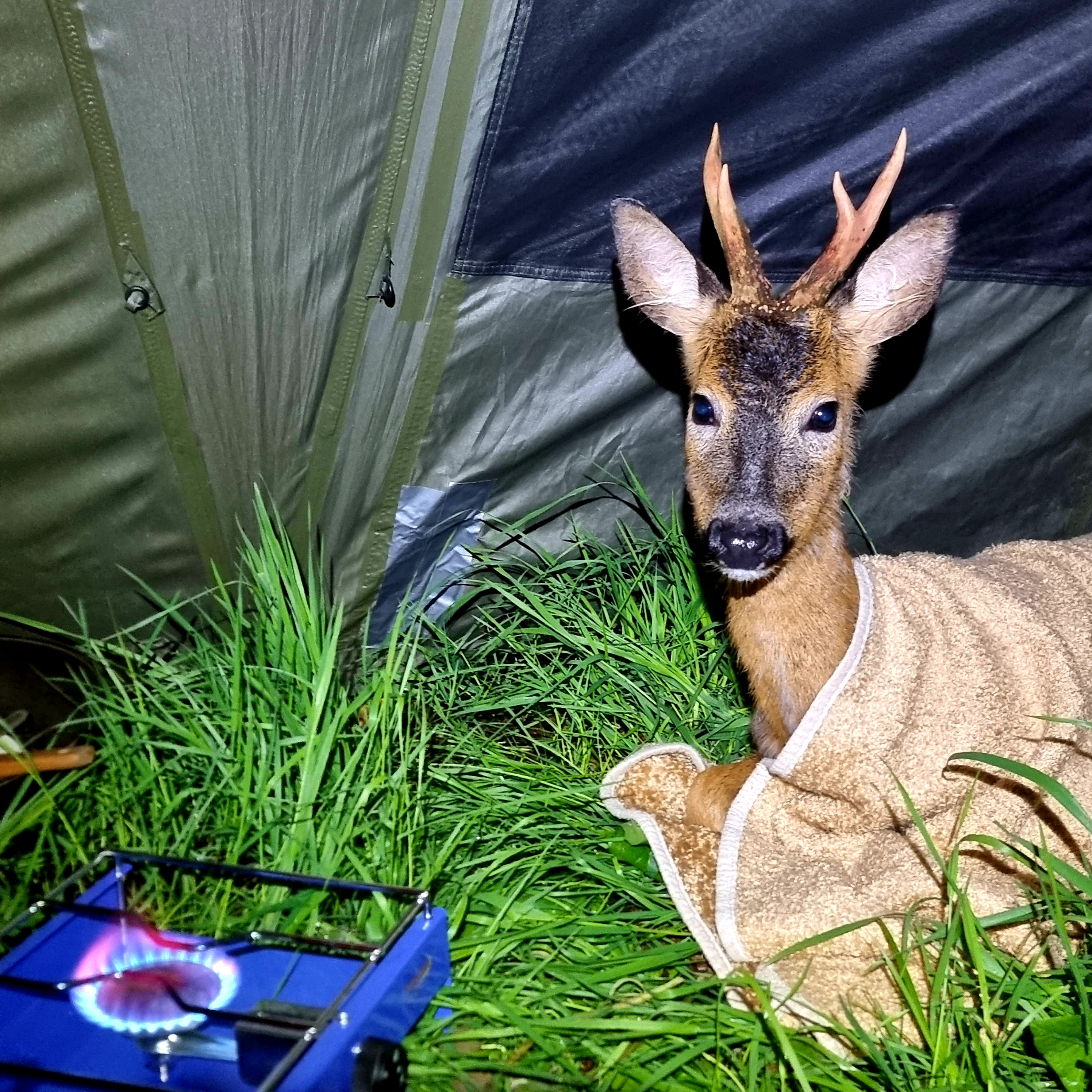 Naast karpers vangen is er door 1 koppel iets heel speciaals waargenomen. Na iets wat op een aanbeet leek, bleek het een ree te zijn die door de lijnen gezwommen was. Gelukkig niet vast in de lijnen, maar het arme dier was in het kanaal verzeild geraakt en kon niet op eigen kracht uit het koude water komen. Het koppel twijfelde niet en met behulp van een voorbijganger werd het prachtige beestje uit het water gehaald, waarna de ree zich in een dekentje kon opwarmen bij de kachel in de tent. Hoe schattig! Na goed opgewarmd te zijn gaf de ree zelf aan dat die weer verder wilde en kon deze zijn weg vervolgen. Zo blijkt maar weer, vissen is veel meer dan alleen vangen. Geweldige actie mannen!