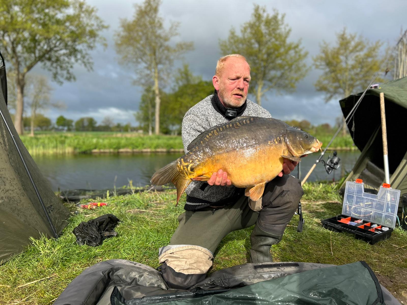Helaas lieten 2 koppels voor het begin van de wedstrijd weten dat er wegens omstandigheden afgehaakt zou worden, zo bleven er nog 17 koppels over. Na de start om 20.00 uur bleef het de eerste paar uur rustig in de controleursgroep. Iedereen had zijn plekje gevonden, de tenten stonden en de hengels waren te water. In de loop van de nacht/de vroege ochtend dienden gelukkig de eerste vissen zich aan. Een van de vissen was een graskarper, een waar monster, van maar liefst 29 kilo! Wat een prachtige torpedo.