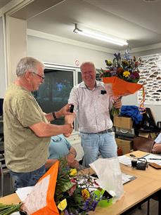 Tijdens de Algemene Ledenvergadering van HSV Ons Genoegen uit Wierden vierde Ronald van Oosterwijk zijn 25-jarig jubileum als penningmeester. Bij dit heuglijke moment hoort natuurlijk een symbolische attentie en daarom kreeg Ronald uit handen van de voorzitter Gerrit Wiggers de zilveren erespeld van Sportvisserij Oost-Nederland.