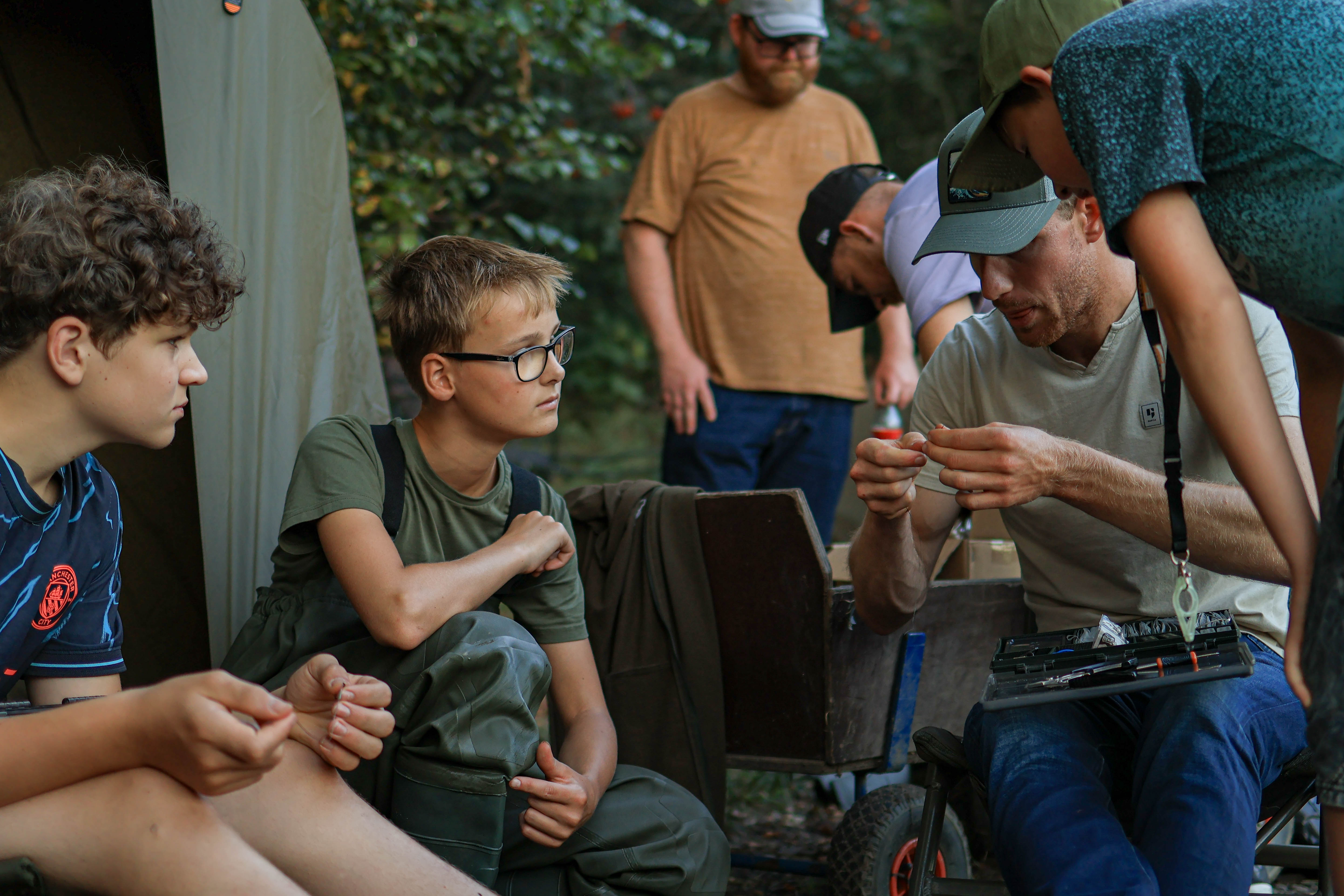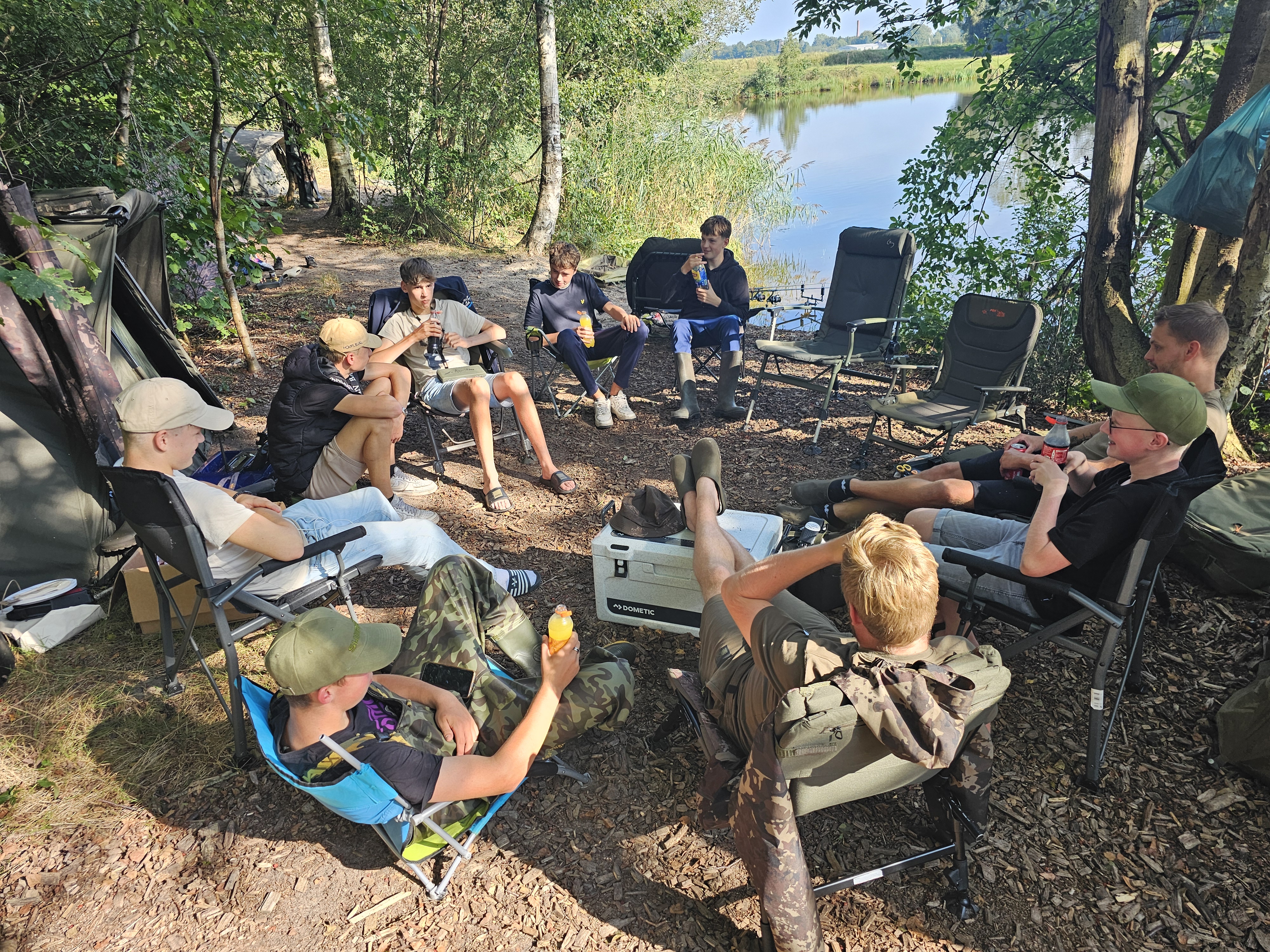 Zaterdagmiddag lunchten de vissers op hun eigen stek, even wat ontspanning. Karpers werden tussendoor gelukkig ook gevangen. Aan het eind van de middag kreeg de jeugd een cursus onderlijnen knopen die werd verzorgd door een van de sponsoren.