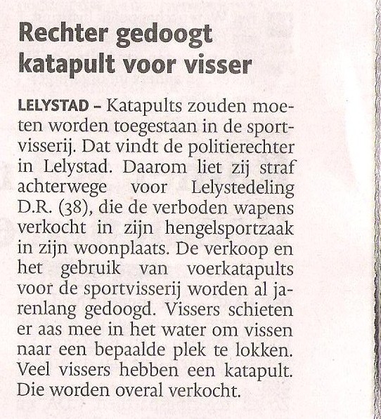 Katapults zouden moeten worden toegestaan in de sportvisserij.