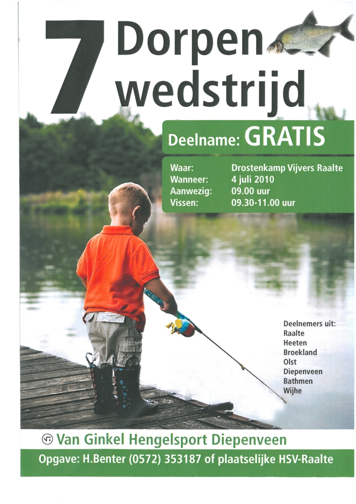 Dit jaar wordt deze wedstrijd gevist in de Drostenkampvijvers te Raalte.