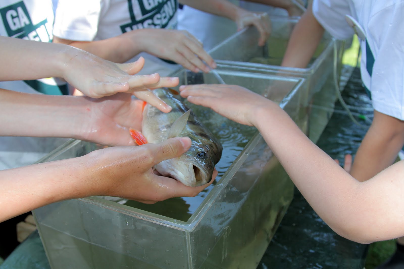 Altijd een van de meest favoriete thema's: visserijkundig onderzoek. Vooraf worden door onze deskundige vissenonderzoekers de mooiste vissen uit de vijvers gevangen. De kinderen mogen hier de vissen zelf vasthouden. Voor velen een hele ervaring om eens zo'n mooie grote karper vast te houden.