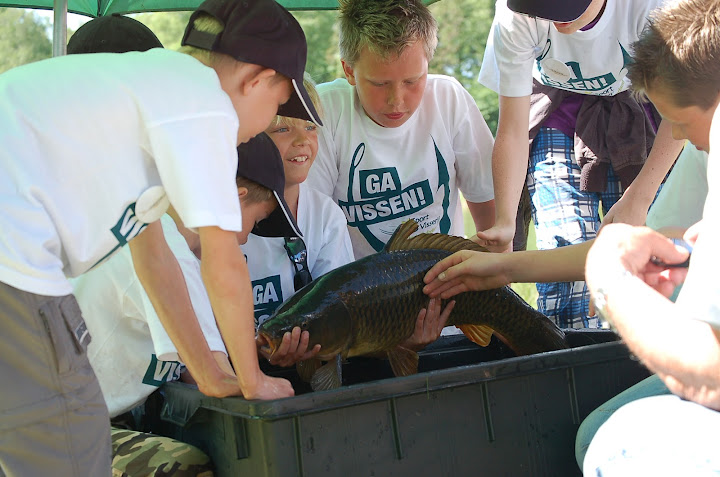 Wat je al niet kunt vangen aan een stuk kleurig kunstaas. Hier kregen de kinderen uitleg over het vissen op roofvis, kunstaas, technieken en dat je natuurlijk erg voorzichtig moet zijn als je een snoek vastpakt!