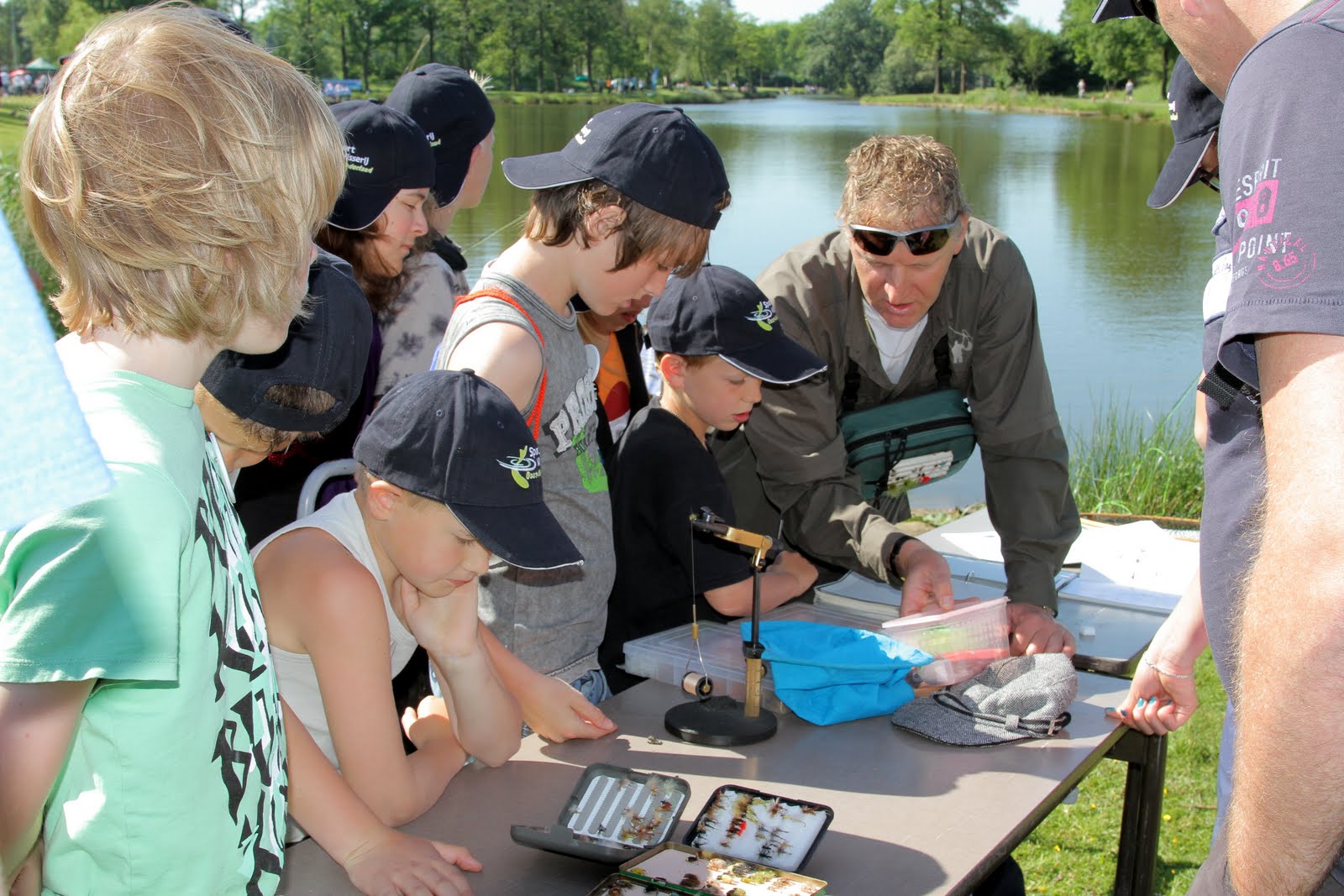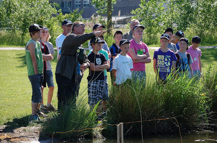 In de themahoek vliegvissen kregen de kinderen uitleg over de verschillende soorten kunstvliegen, het binden van vliegen en de werptechniek