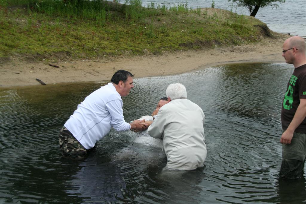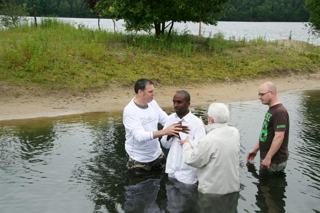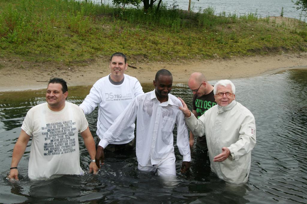 Ronald en een Afrikaanse broeder werden door algehele onderdompeling gedoopt. Er werden een paar liederen gezongen en zelfs de weergoden werkten een klein beetje mee: 10 minuten voor de doop stopte het met regenen, 10 minuten er na begon het weer.