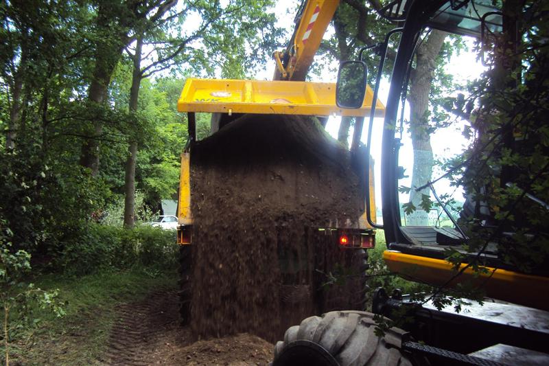 Begin juni jl. is de toegangsweg aangestort met goedgekeurd puin. Het pad is mooi vlak geschoven en de zijkanten zijn netjes bijgewerkt door Joop en Gerrit.