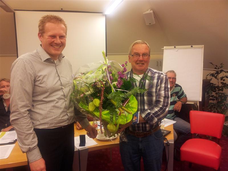Tijdens onze afgelopen Algemene Ledenvergadering op 15 mei jl. werden verschillende jubilarissen in het zonnetje gezet en gehuldigd met een zilveren speld of zelfs met een gouden speld i.v.m. hun 12,5 jarig jubileum in het rayonbestuur. Helaas was Ep Prent, 12,5 jaar penningmeester van rayon 3, niet in de gelegenheid de ALV bij te wonen. Hij werd tijdens de Algemene Ledenvergadering van rayon 3 op dinsdag 2 oktober jl. alsnog gehuldigd met de gouden speld en een mooie bos bloemen. Een leuke verrassing voor Ep!