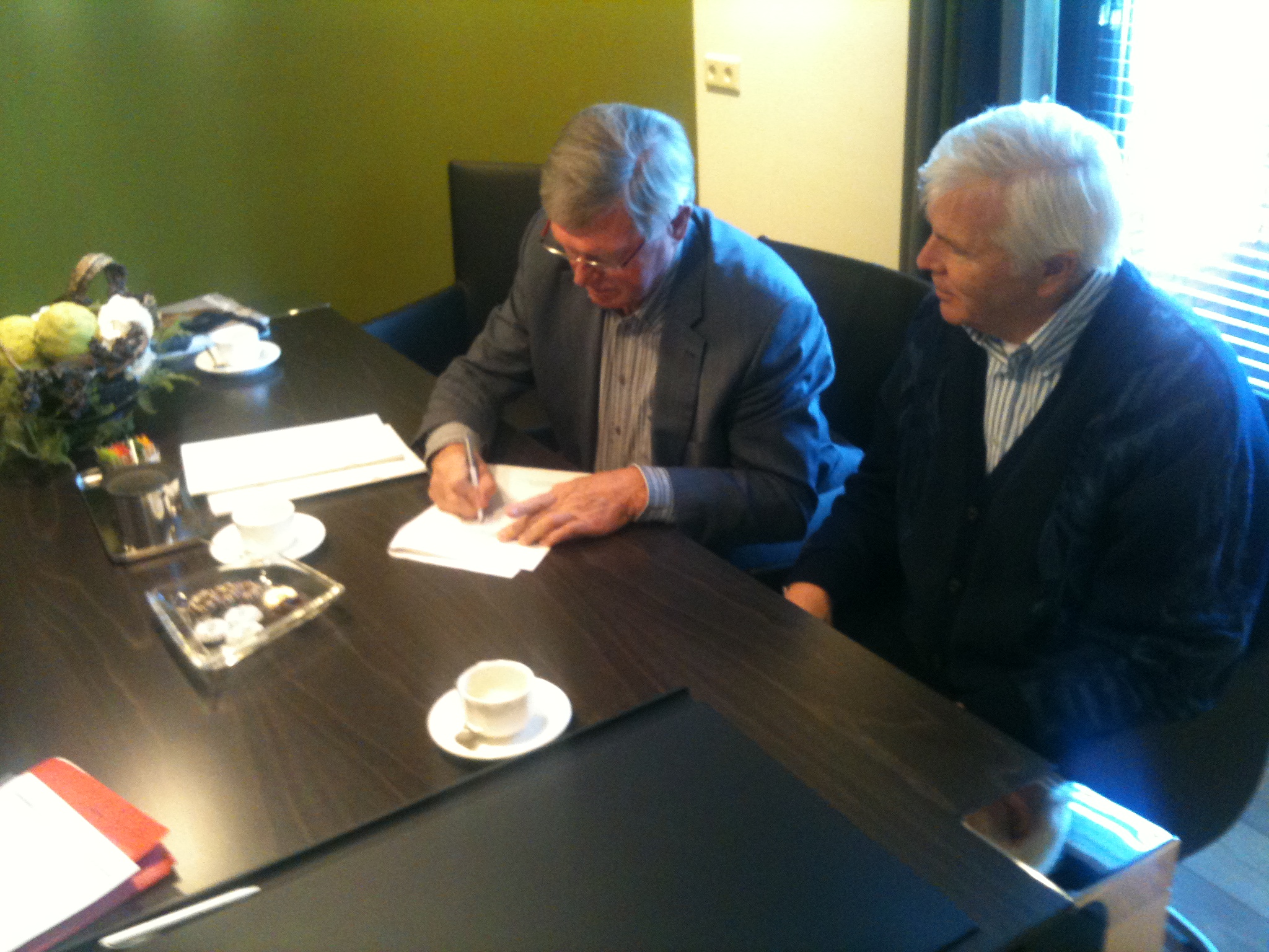 Afgelopen dinsdag 11 december was het zover en hebben onze voorzitter J.L. Eggens en secretaris G.H. Sloot de koopakte bij de notaris ondertekend. Daarmee zijn we nu officieel eigenaar van de Bijkersplas.