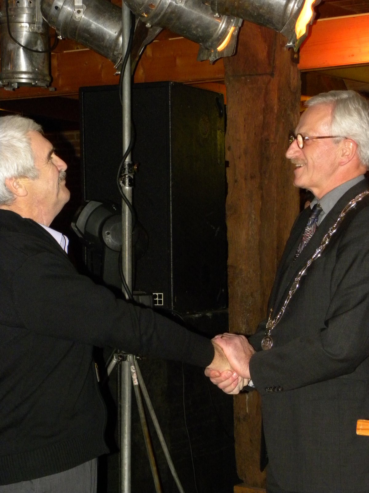 Hij kreeg in het bijzijn van zijn vrouw Leny, kinderen en kleinkinderen en alle op de feestavond aanwezige verenigingsleden, de Koninklijke onderscheiding “Lid van de Orde van Oranje-Nassau” opgespeld door de burgemeester van Zutphen.