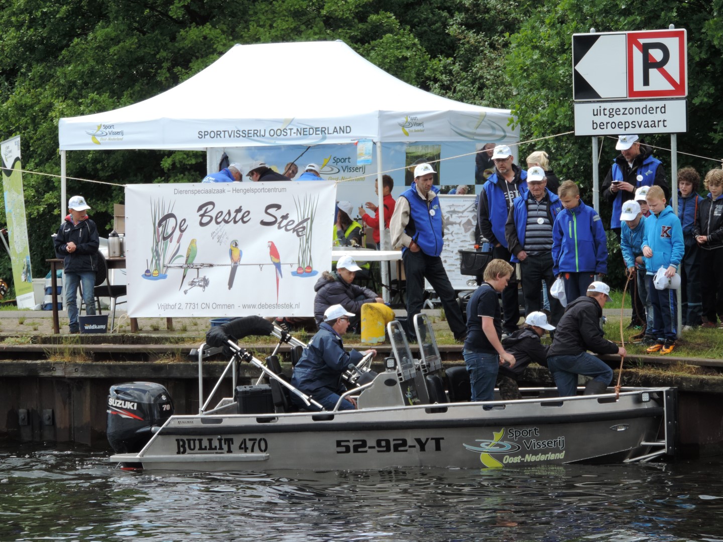 De Beste Stek uit Ommen. Na afloop kregen alle kinderen ook nog eens een onthaakmat mee naar huis. Handig om op te zitten, maar uiteraard ook erg nuttig wanneer je een wat grotere vis vangt, die je even wil neerleggen om te onthaken. Een van de deelnemers wilde graag met de vaste stok vissen. Daar hadden we uiteraard rekening mee gehouden en met opperste concentratie deed deze jongeman zijn uiterste best om een visje te vangen.