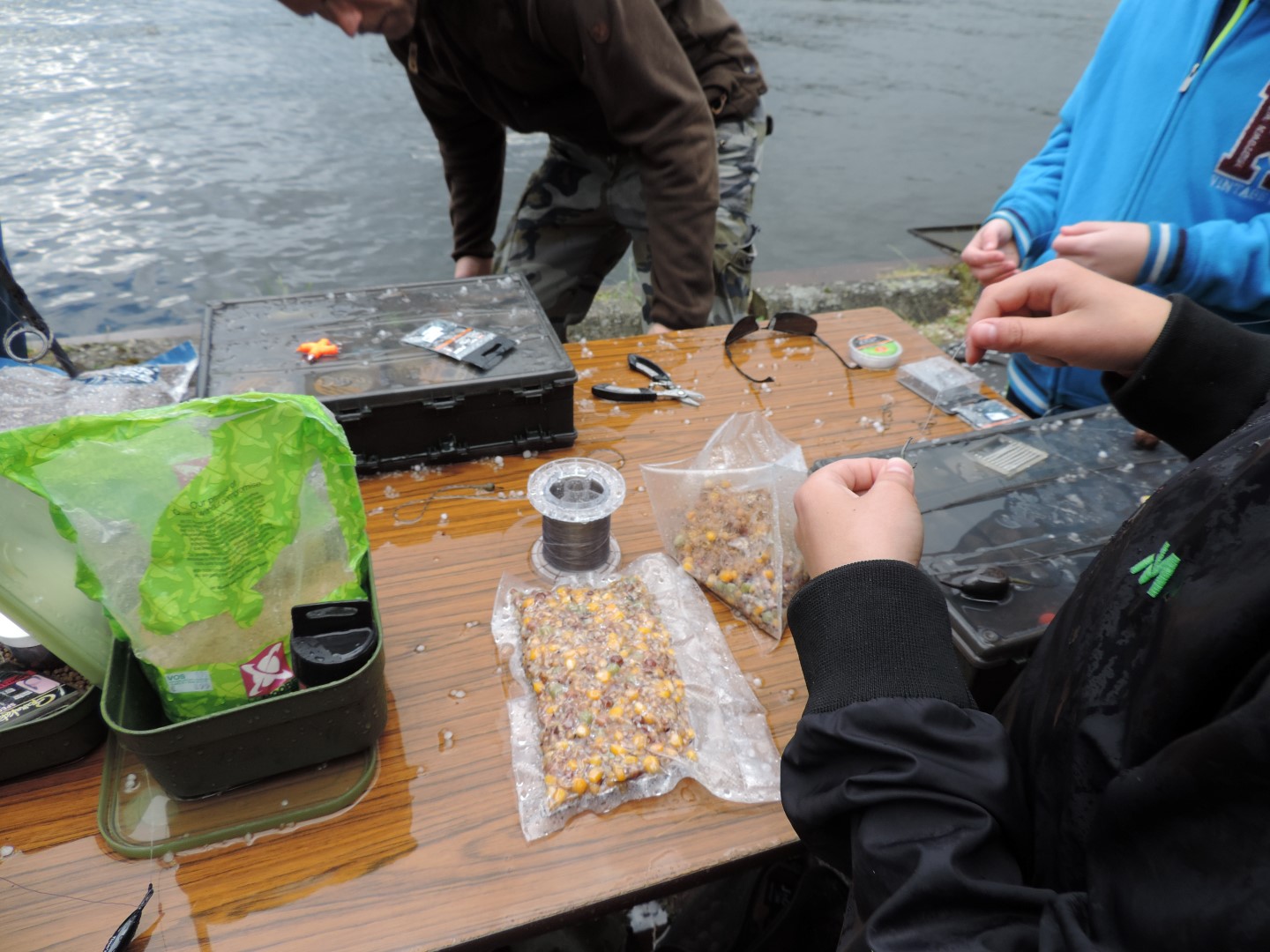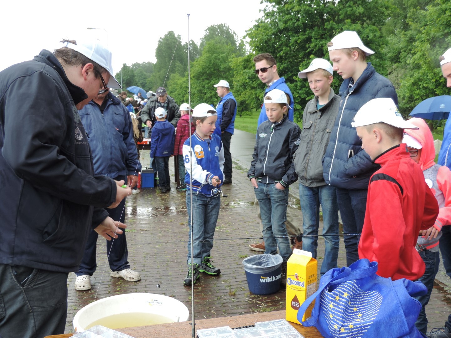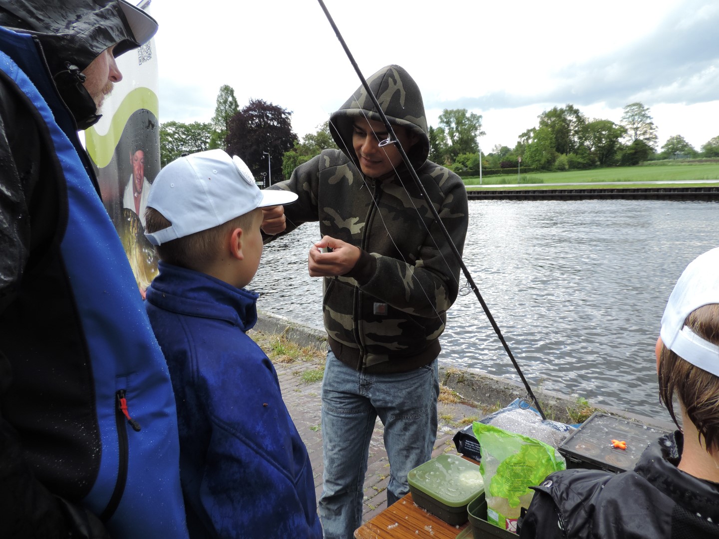 Met hulp van de vele begeleiders werden de hengels in elkaar gezet en opgetuigd. Het vissen kon beginnen.