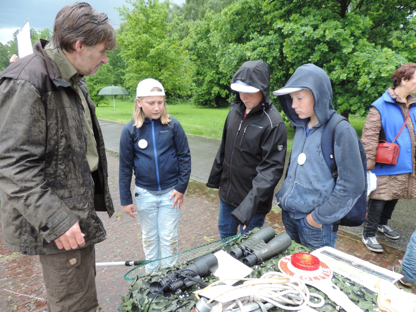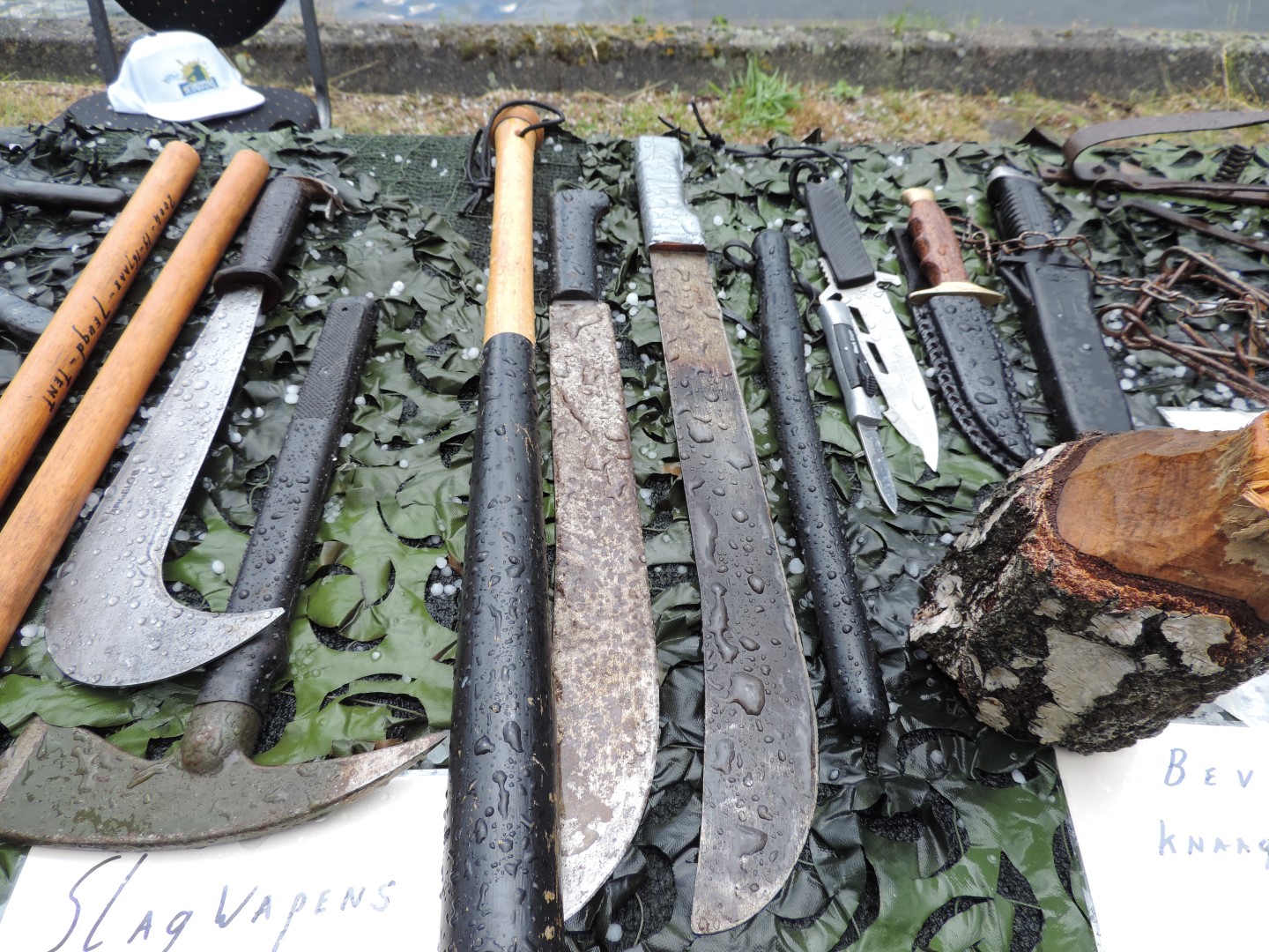 In beslag genomen spullen door GerardGerard stuitte tijdens zijn diensten als Buitengewoon Opsporingsambtenaar wel eens op verboden voorwerpen die mensen bij zich hadden. Dit soort spullen worden in beslag genomen. Tijdens de jeugddag wist Gerard de kinderen spannende verhalen te vertellen over de inbeslagnames van diverse wapens, zoals kapmessen en geweren, maar ook verboden vistuigen.