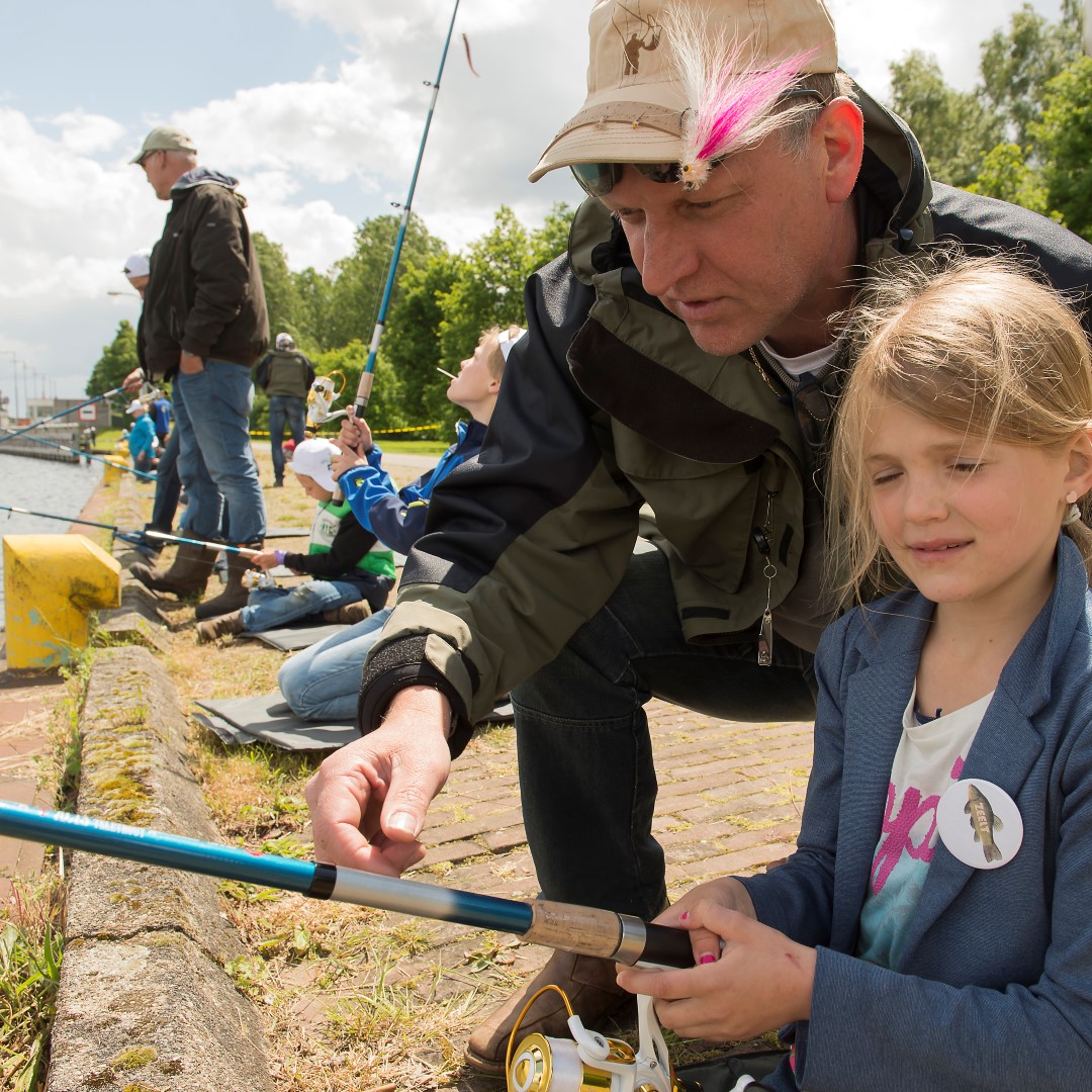 | De werphengel mag je houden | Zoek maar wat kunstaas uit | Dit vissertje mocht ook zijn vaste hengel houden |
