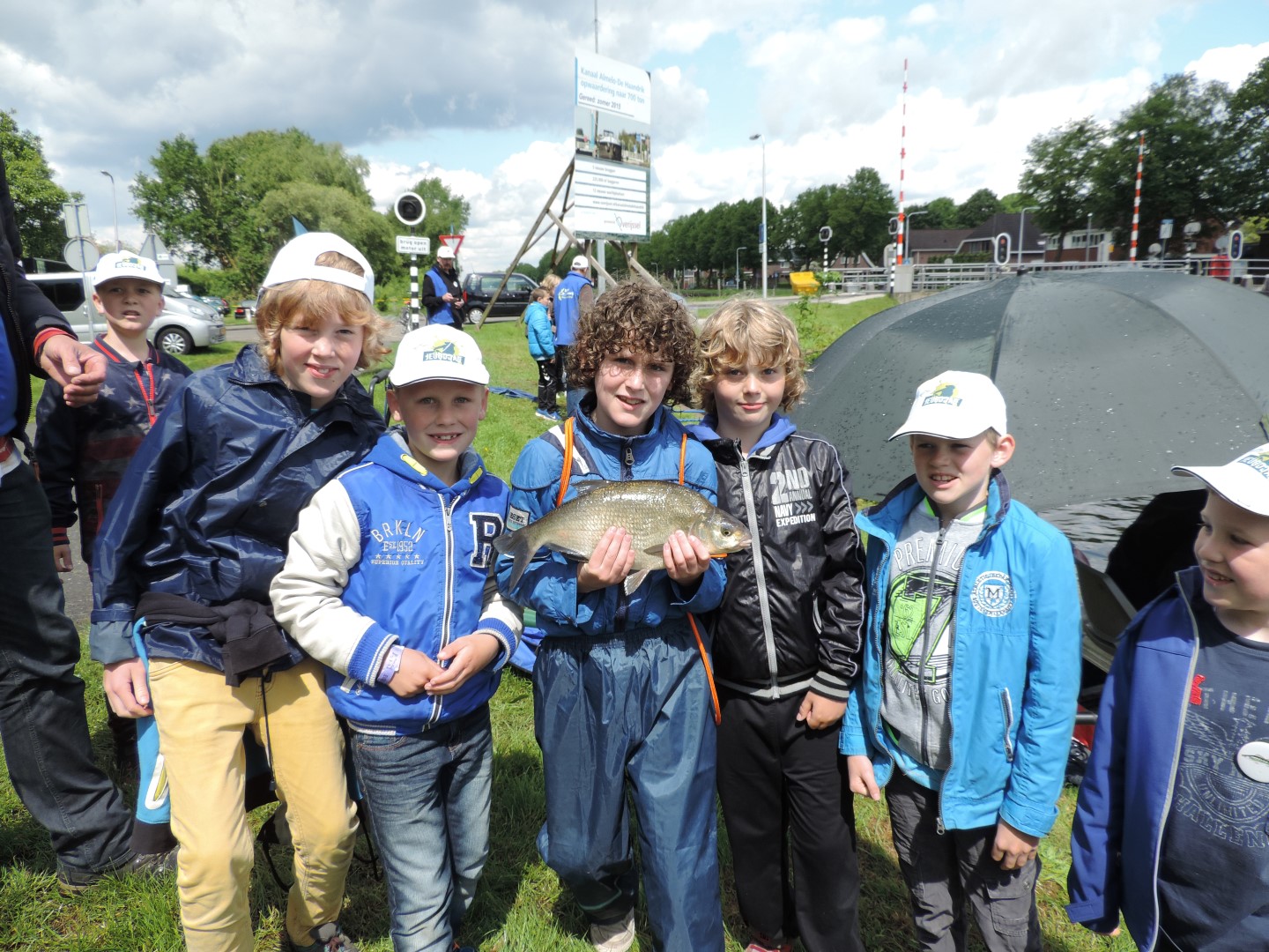 Vaste stok vissen met VincentDat vissen met de vaste stok en een dobbertje nog altijd heel succesvol en leuk is, bleek wel weer. Vincent liet de kinderen zien hoe je je dobbertje op verschillende manieren kunt uitpeilen. Naast verschillende grondels, kwamen hier de mooie grote vissen op de kant! Enkele kinderen wisten met hulp van Vincent zelfs een mooie brasem te vangen.