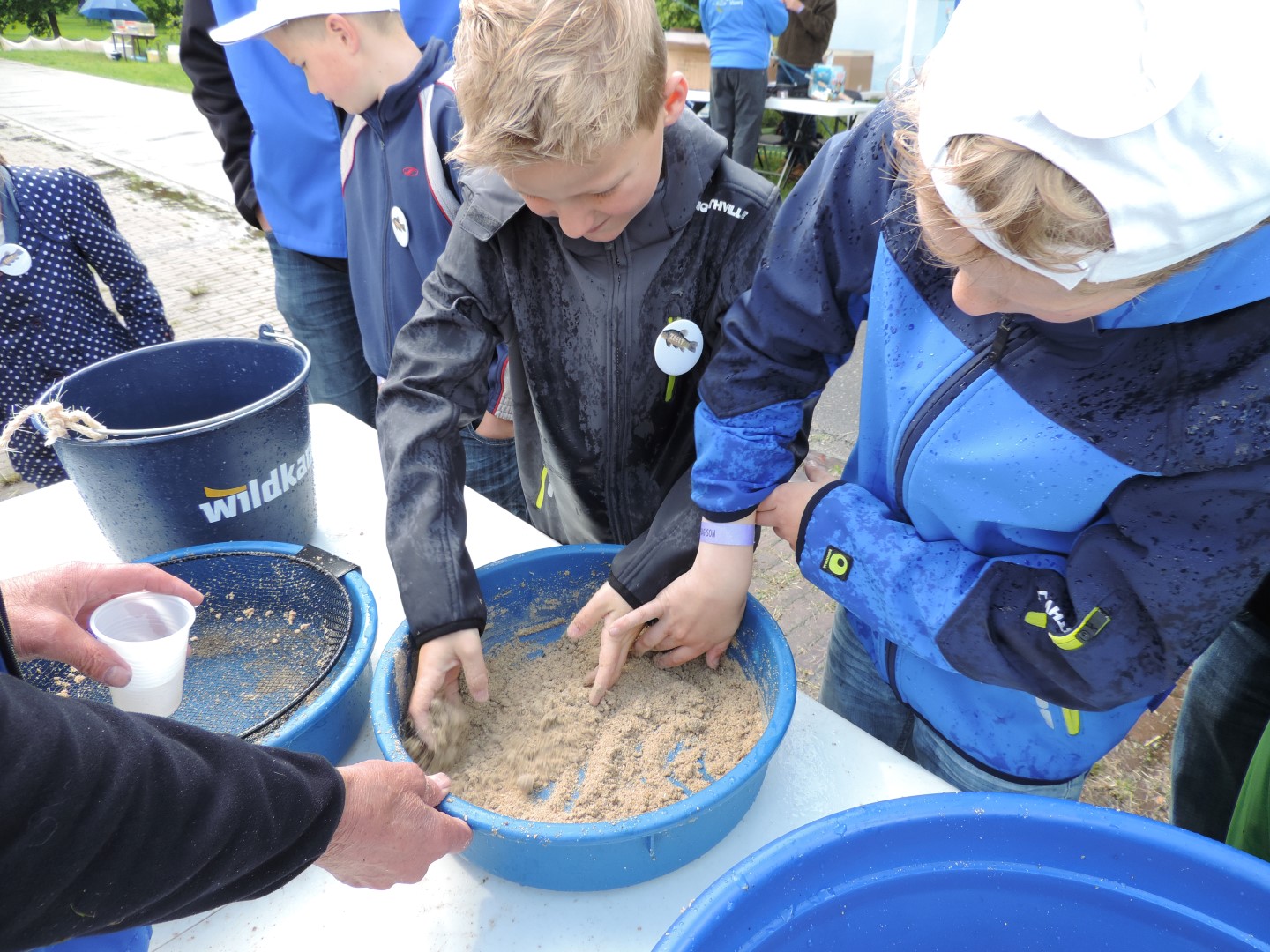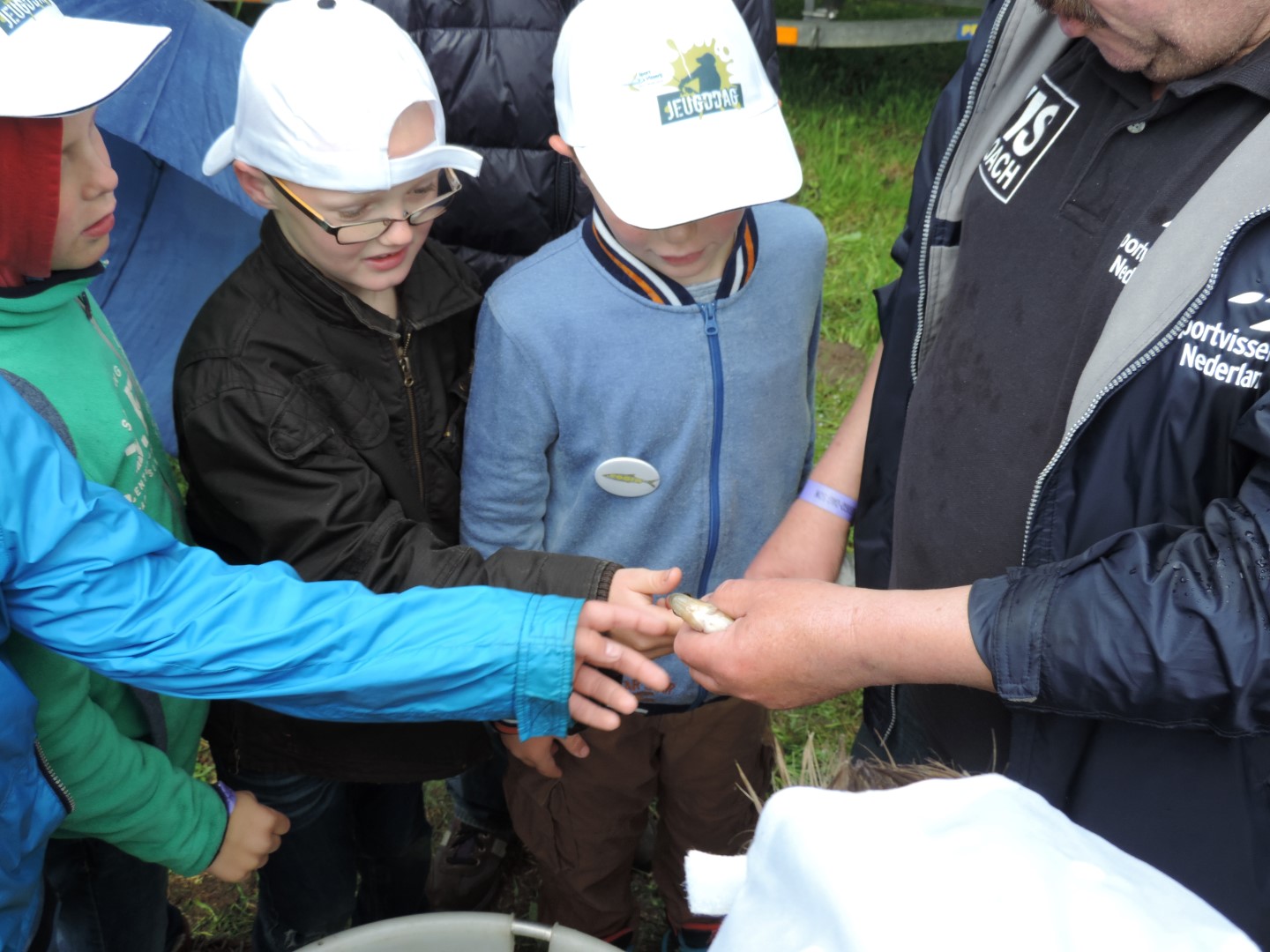 Visherkenning met Johan en AntonVismeester Johan en visonderzoeker Anton hadden ’s ochtends al wat vis gevangen met speciale apparatuur waar visonderzoek mee wordt gedaan. Met name grotere vissen zoals een paar snoeken, maar ook voor kinderen meer bijzondere soorten zoals zeelt werden aandachtig bekeken. Het is leuk om te zien dat kinderen deze soorten ook al op jonge leeftijd weten te herkennen.