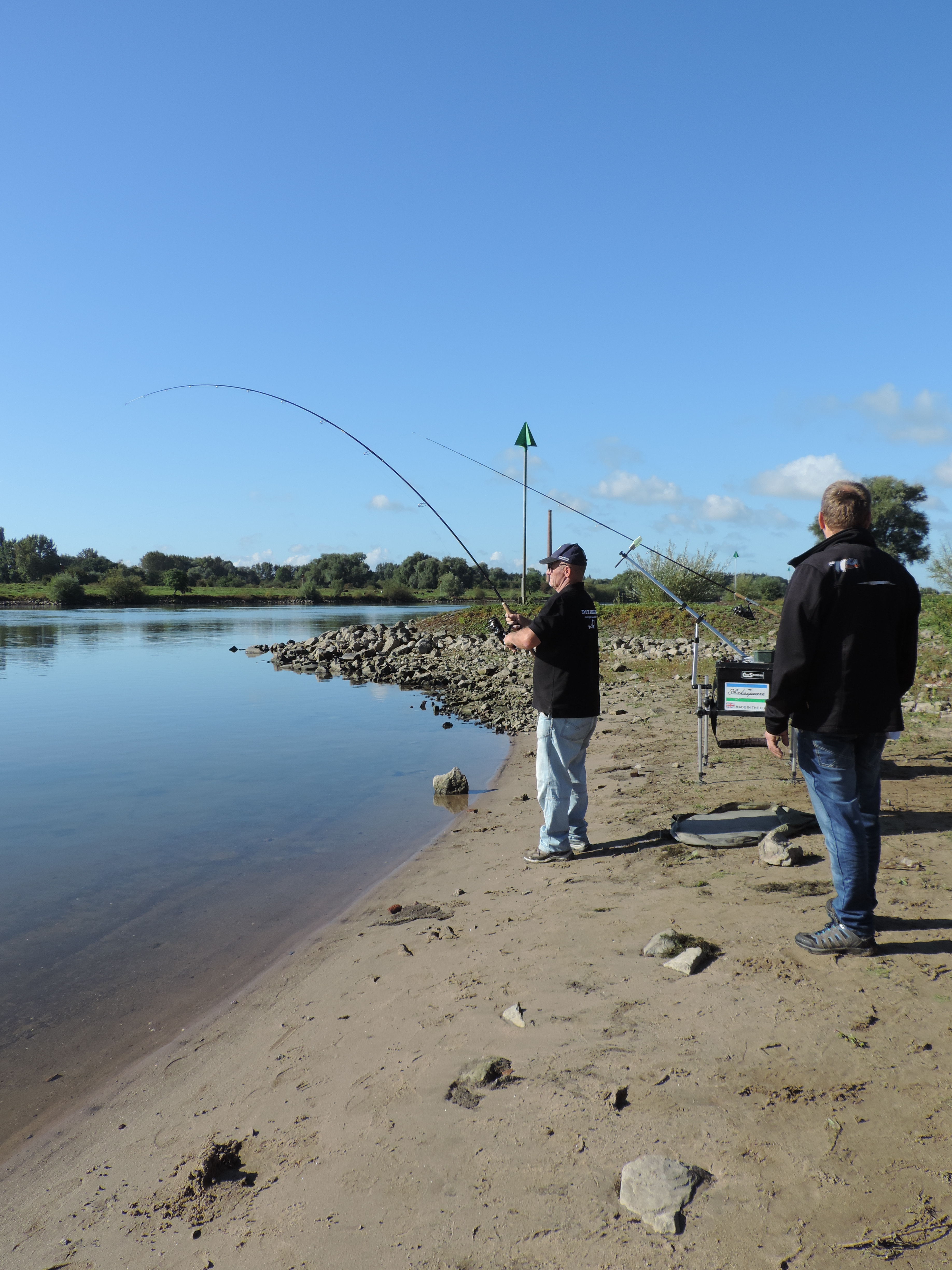 In de voorafgaande week was er al volop voorgevist door Cees en Frank. De bodem van de kribvakken was in kaart gebracht en er werd barbeel gevangen. Niet elke vissessie helaas, maar de vooruitzichten waren goed genoeg om de bezoekers zaterdag live getuigen te kunnen laten zijn van een paar mooie barbeelvangsten.