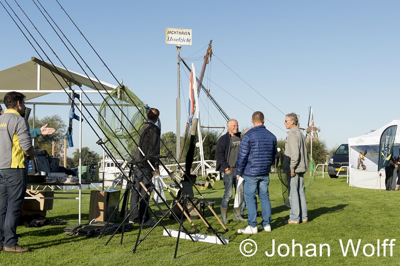 camping IJsselzicht. Al snel ontwaken de eerste barbeelvissers, die de avond ervoor al gearriveerd waren. Er worden wat handen geschud en de sfeer is goed! De mist trekt op en de zon verwarmt het parcours. We kunnen beginnen. Het terrein voor IJsselzicht wordt ingericht met onze federatiestand en kraampjes van diverse hengelsportleveranciers. Van pellets tot complete hengelsets voor het vissen op barbeel, alle basisbenodigdheden zijn ter plaatse verkrijgbaar. Ook voor de catering wordt uitstekend gezorgd.