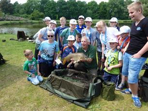 Prachtig weer, zo'n 30 razend enthousiaste vrijwilligers, bijna 80 kinderen en een heleboel begeleiders, Marco Kraal die de kinderen kwam verrassen met gesigneerde petten, toplocatie en... alles wat met vissen te maken heeft! Dat waren afgelopen zaterdag de ingrediënten voor een fantastische 10e jeugddag rondom de Drostenkampvijvers in Raalte!