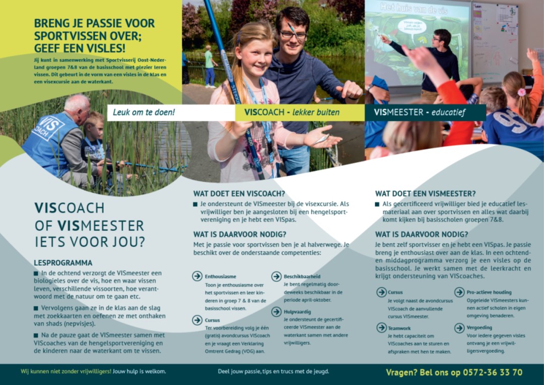 Voor het verzorgen van vislessen voor groep 7/8 van de basisschool zijn we op zoek naar enkele nieuwe enthousiaste VISmeesters.